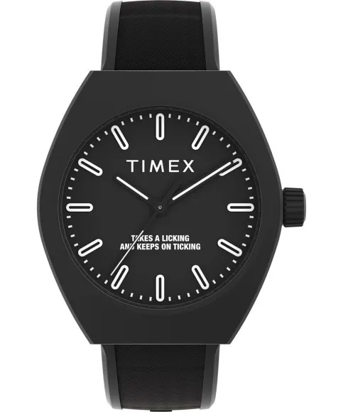 De Timex® Analoge 'Essex' Unisex Horloge TW2W42100 presenteert een perfecte combinatie van stijl en functionaliteit. Ontworpen voor de moderne persoon, is de Essex niet alleen een horloge, maar ook een veelzijdige accessoire dat zich leent voor casual gebruik. Met de gedurfde zwarte hars behuizing van 40mm in doorsnee en 10mm in dikte, balanceert dit horloge duurzaamheid met een aantrekkelijke esthetiek. De zwarte wijzerplaat, beschermd door mineraalglas, aanvult het strakke ontwerp terwijl de helderheid en zichtbaarheid gewaarborgd zijn. De analoge weergave maakt het eenvoudig om de tijd in een oogopslag te lezen, wat zowel praktisch als verfijnd is. Voorzien van een betrouwbare quartz beweging, garandeert de Essex nauwkeurige tijdsregistratie, een vereiste voor elke drukke levensstijl. Het horloge heeft een comfortabele band van 20cm, gemaakt van plastic, ontworpen om zich aan te passen aan verschillende polsmaten met een breedte van 19mm. De traditionele gesp sluit het horloge stevig om uw pols, wat gemoedsrust biedt of u nu aan het werk bent of geniet van een ontspannen weekend. Bovendien beschikt het Essex horloge over een waterbestendigheid tot 5 bar, waardoor het geschikt is voor licht zwemmen en spetteren, hoewel het niet aanbevolen wordt voor activiteiten in diep water. Met een totaal gewicht van slechts 40 gram is dit horloge licht genoeg voor dagelijks gebruik, wat zorgt voor een comfortabele pasvorm die geen concessies doet aan stijl. Omarm de praktische en hedendaagse aantrekkingskracht van de Timex Essex, een essentieel toegevoegd aan elke horlogecollectie.