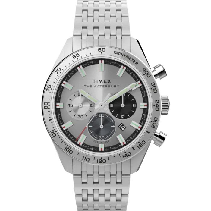 Timex staat als een baken van innovatie en betrouwbaarheid in de wereld van horlogemakerij. Geworteld in een diepgaande toewijding aan kwaliteit, vervaardigt Timex tijdpieces die zowel functioneel als stijlvol zijn. Elk horloge weerspiegelt een erfenis van precisie-engineering en een passie voor design, waarbij de essentie van tijdkeeping sinds de oprichting wordt vastgelegd. De missie van het merk draait om het aanbieden van toegankelijke luxe, waarbij elk stuk een mix is van uitzonderlijke ambachtelijkheid en betaalbaarheid. Timex besteedt grote aandacht aan detail en produceert horloges die inspelen op een breed scala aan smaken en voorkeuren. Met een scala aan stijlen, van klassiek tot sportief, past Timex zich voortdurend aan de evoluerende eisen van de huidige dragers aan, terwijl het een sterke verbinding met zijn rijke erfgoed behoudt. De Waterbury Traditional-serie is een uitmuntend voorbeeld van deze toewijding, die tijdloze elegantie combineert met moderne technologie, en horloges maakt die je begeleiden tijdens je dagelijkse avonturen.Over Timex® Chronograph 'Waterbury Traditional' Herenhorloge
