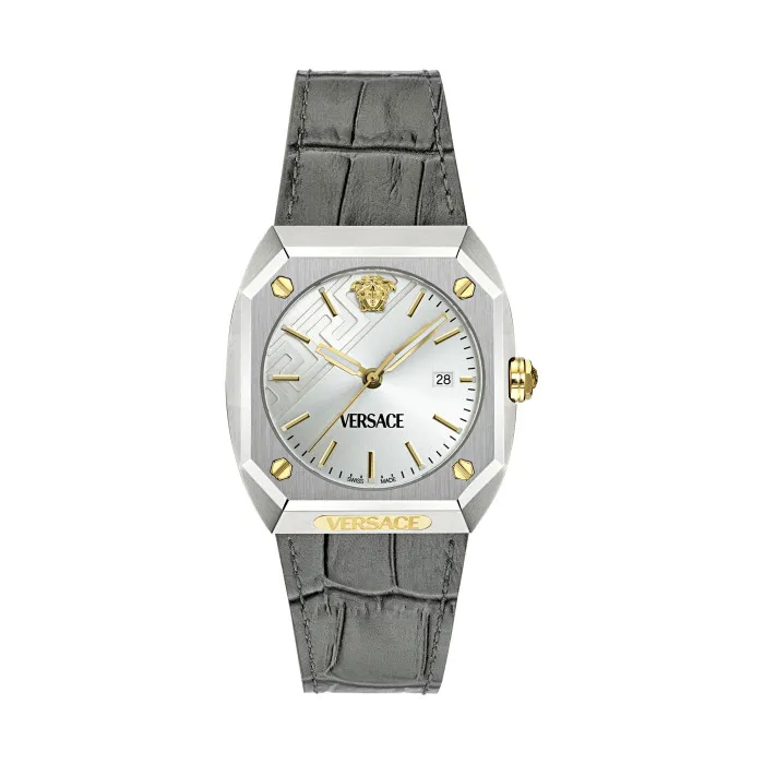 De Versace® Analogue 'Antares' Herenhorloge VE8F00124 herintroduceert een tijdloze verfijning, perfect voor de moderne gentleman. Dit prachtige tijdschrift toont een zorgvuldig vervaardigde rechthoekige kast van roestvrij staal, met een lengte van 44mm, een breedte van 41mm en een dikte van 10mm, die luxe en stijl uitstraalt. Het horloge beschikt over een verblindende zilveren wijzerplaat, beschermd door saffierglas dat zowel duurzaamheid als elegantie toevoegt. De analoge weergave is aangevuld met een datumsfunctie, zodat je altijd stijlvol en punctueel bent. De grijze leren band voegt een vleugje charme toe, met een lengte van 21cm en een breedte van 27mm, en wordt vastgezet met een traditionele gesp die comfort en betrouwbaarheid uitstraalt. Het elegante ontwerp is ideaal voor formele gelegenheden, maar ook veelzijdig genoeg om je dagelijkse stijl te verbeteren. Met een indrukwekkende waterbestendigheid tot 5 bar past dit horloge moeiteloos bij je levensstijl, of je nu op kantoor bent of geniet van een casual weekend. Vakkundig vervaardigd, zorgt de quartz beweging voor een nauwkeurige tijdsweergave, waardoor de Antares niet alleen een luxe accessoire is, maar ook een betrouwbare metgezel. Met een gewicht van slechts 86 gram is het licht genoeg voor dagelijks gebruik zonder concessies te doen aan de uitstraling. Het Versace® horloge is echt ontworpen voor de veeleisende man die zowel functionaliteit als stijl waardeert in één meesterwerk. Dit horloge is niet alleen een statement stuk, het is een symbool van je status en smaak, en belichaamt de luxe en excellentie die Versace vertegenwoordigt.