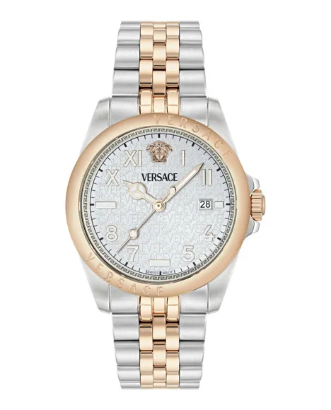 De VersaceĀ® Analogue 'Anteo' Herenhorloge VE9H00424 is de belichaming van Italiaanse elegantie, gecombineerd met functionele verfijning. Deze opmerkelijke tijdmeter beschikt over een opvallende multikleurige roestvrijstalen kast met een diameter van 41 mm en een dikte van 10 mm, waarmee hij een zelfverzekerde uitstraling op de pols biedt. De verfijnde zilveren wijzerplaat schittert achter een premium saffierglas, dat krasbestendigheid en duurzame helderheid garandeert. De fascinerende analoge weergave heeft een datumschaal, wat de praktische toepassing voor de moderne man vergroot. Gemaakt voor zowel stijl als prestaties, wordt deze horloge aangedreven door een betrouwbare quartz beweging, wat zorgt voor nauwkeurige tijdsregistratie en minimaal onderhoud. De luxueuze gouden roestvrijstalen band, met een breedte van 21 mm en een lengte van 21 cm, complementeert de algehele esthetiek moeiteloos. Met een veilige deployant sluiting is comfort een prioriteit, zodat je dit horloge naadloos gedurende de dag kunt dragen. Voor de veeleisende man die zowel mode als functionaliteit zoekt, combineert deze dresshorloge veelzijdigheid met opvallende designelementen. Met een waterbestendigheid tot 5 bar kun je erop vertrouwen dat de Anteo de dagelijkse uitdagingen aankan, terwijl het zijn onberispelijke elegantie behoudt. Omarm een statement van stijl en verfijning dat alleen Versace kan bieden, waardoor dit horloge niet slechts een accessoire is, maar een symbool van verfijning en luxe in elke tik.