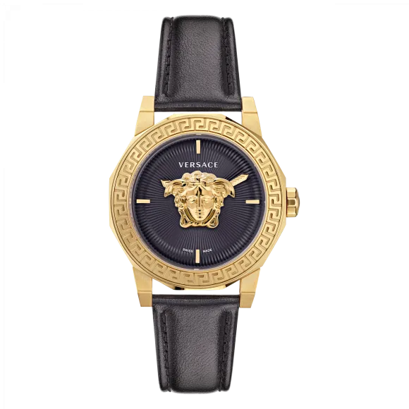 Ontdek de belichaming van elegantie met de Versace® Analogue 'Medusa Deco' Dames Horloge VE7B00223, een verbluffend tijdsdocument dat de rijke erfgoed en de unieke stijl van het merk belichaamt. Versace wordt al lang geprezen om zijn gedurfde ontwerpen, beïnvloed door kunst en cultuur, waarbij luxe wordt samengevoegd met een moderne twist. De Medusa Deco-collectie is geïnspireerd op het fascinerende Medusa-embleem, dat kracht, aantrekkingskracht en de krachtige vrouwelijkheid symboliseert die Versace vertegenwoordigt. Dit horloge is niet zomaar een accessoire; het is een verklaring van verfijning en individualiteit, perfect voor de moderne vrouw die zowel schoonheid als functionaliteit waardeert. Dit prachtige dress-horloge heeft een ronde kast van roestvrij staal die luxe uitstraalt met zijn warme gouden afwerking. De diameter van de kast van 38 mm zorgt voor de perfecte balans voor elke pols en creëert een opvallende indruk zonder te overweldigend te zijn. Een luxe zwarte wijzerplaat voegt diepte toe, terwijl het saffierglas zorgt voor duurzaamheid, resulterend in een stuk dat is ontworpen voor de lange termijn. Het quartzuurwerk garandeert precisie bij elke tik, waardoor je op tijd bent voor al je verplichtingen. De zwarte leren band, met een lengte van 19 cm en een breedte van 18 mm, is prachtig getextureerd en biedt een rijk contrast tegen de gouden accenten. Het heeft een vouwsluiting voor een veilige pasvorm, waarbij stijl en functionaliteit samenkomen. Met een waterbestendigheid tot 5 bar is dit horloge perfect voor elke gelegenheid, van een chic diner tot dagelijks gebruik. De lichte constructie van slechts 74 gram betekent dat je het nauwelijks zult voelen, waardoor je je verfijnde smaak comfortabel kunt laten zien. Het Medusa Deco horloge is waar elegantie en hoge prestaties samenkomen, waardoor het een must-have is voor degenen die hun collectie willen verrijken met een vleugje luxe.Koop Versace® Analogue 'Medusa Deco' Dames Horloge bij Ormoda