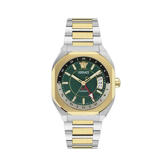Versace is een naam die synoniem staat voor luxe en verfijning, waarbij de levendige traditie van de Italiaanse mode wordt verweven met nauwkeurige ambacht. Opgericht in 1978 heeft het merk de wereld van haute couture en accessoires voortdurend herdefinieerd. In de horloge-industrie staat Versace als een bakermat van elegantie, waarbij elke tijdmeter niet alleen een hulpmiddel is om de tijd te meten, maar een kunstwerk dat de essentie van zelfvertrouwen en stijl vastlegt. De horloges van het merk weerspiegelen zijn rijke erfgoed en omarmen tegelijkertijd moderne esthetiek, waardoor ze tijdloze verzamelobjecten zijn voor opvallende individuen. Elk horloge toont een ingewikkeld ontwerp, of het nu gaat om gedurfde kleuren, luxe materialen of innovatieve mechanica, dat spreekt tot de verfijnde smaak van mannen die hun identiteit willen uitdrukken met verfijnde accessoires. Versace heeft een diepgaand begrip van wat een horloge betekent voor de drager—een uitbreiding van iemands persoon die functionaliteit combineert met onovertroffen ontwerp. Het is met deze erfenis dat Versace blijft opmerkelijke stukken introduceren zoals de 'V-contempo Gmt', waarmee het zijn status als leider in de luxe horlogemarkt bevestigt.