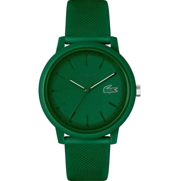 The Lacoste® Analogue '12.12' Men's Watch 2011170 is a striking accessory designed for men who value both functionality and style. This casual timepiece features a bold green resin case, measuring 42mm in diameter, complemented by a sleek 10mm thickness. The round face displays a matching green dial covered by durable mineral glass, ensuring clarity and resilience. Powered by precision quartz movement, it guarantees accurate timekeeping for your busy lifestyle. The green silicone band, with a generous length of 21cm and width of 20mm, is designed for both comfort and durability. Secured with an easy-to-use buckle clasp, this watch is perfect for everyday wear. With a water resistance of 5 bars, it can withstand splashes and brief immersion without worry. Whether you are at work, out with friends, or enjoying leisure time, the Lacoste '12.12' Men's Watch is a versatile addition to your wardrobe that seamlessly combines functionality with a sporty aesthetic.Introducing Lacoste® Analogue '12.12' Men's Watch 2011170