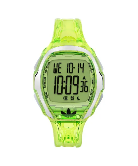 Entdecken Sie das lebendige Wesen der Adidas Originals® Digital 'Athletics One' Unisex-Uhr AOFH25005. Dieses fachmännisch gestaltete Zeitmesser spiegelt den Geist aktiver Lebensstile wider und verkörpert das Engagement der Marke für Qualität und Innovation. Mit seinen auffälligen Grüntönen und dem digitalen Display dient diese Uhr nicht nur als funktionales Accessoire, sondern auch als Statement-Stück für diejenigen, die sowohl Stil als auch Leistung schätzen. Gefertigt aus einem robusten Gehäuse aus Harz, vermittelt das einheitliche grüne Farbdesign Energie und Frische und macht es perfekt für abenteuerliche Ausflüge oder im Alltag. Mit einem Durchmesser von 45 mm und einer Dicke von 12,5 mm sorgt das tonneau-förmige Gehäuse für einen bequemen Sitz an jedem Handgelenk. Genießen Sie die Klarheit, die das langlebige Plexiglas bietet, das das Zifferblatt schützt und garantiert, dass es bei jedem Blick ins Auge fällt. Das grüne Plastikband ergänzt das Zifferblatt wunderschön und bietet mit einer Länge von 20 cm und einer Schnallenverschluss eine sichere und komfortable Passform. Über das atemberaubende Aussehen hinaus beherbergt diese Uhr ein präzises Quarzwerk, das Zuverlässigkeit verspricht, egal ob Sie Ihr Training stoppen oder einfach nur die Zeit ablesen möchten. Mit zusätzlichen Funktionen wie Stoppuhr, Countdown-Timer, Alarm und Lichtfunktionalität ist sie ein wesentliches Begleiter für den modernen Lebensstil. Mit einer Widerstandsfähigkeit von bis zu 10 bar unterstützt diese Uhr sowohl Ihre aktiven Unternehmungen als auch Ihre alltäglichen Momente mit Leichtigkeit. Setzen Sie mit einem Zeitmesser, der typisch für Adidas Originals ist, ein mutiges Statement. Mit der Funktion des Tages- und Datums kalenders hält sie Sie informiert, während Sie Ihren Tag navigieren. Egal, ob Sie Besorgungen erledigen oder Ihre nächste große Herausforderung meistern, diese Uhr ist so gestaltet, dass sie mit Ihnen Schritt hält. Von ihren eleganten Linien bis zu den robusten Materialien bietet sie mit jedem Ticken sowohl Leistung als auch Stil. Erleben Sie die Kombination aus sportlich inspirierter Ästhetik und modernster Technologie mit der Adidas Originals® Digital 'Athletics One' Unisex-Uhr AOFH25005. Shop Adidas Originals® Digital 'Athletics One' Unisex-Uhr AOFH25005 bei Ormoda
