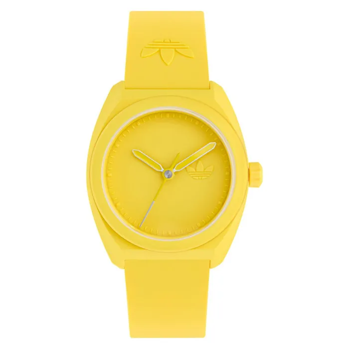 Die Adidas Originals® Analogue 'Project Three' Unisex Uhr AOST24054 ist ein auffälliges Zeitmessgerät, das die Essenz von lässiger Eleganz verkörpert. Diese Uhr wurde für diejenigen entworfen, die Stil und Funktionalität zu schätzen wissen, und verbindet nahtlos Alltag mit sportlich inspiriertem Flair. Hergestellt von einer Marke, die für ihre innovativen Designs und die Qualität ihrer Verarbeitung bekannt ist, fängt diese Uhr den Geist des modernen Individuums ein. Die Project Three-Serie zeichnet sich durch lebendige Farben und zuverlässige Leistung aus, was sie für verschiedene Anlässe geeignet macht, sei es im Fitnessstudio oder bei einem lässigen Ausflug. Die ikonische Ethik der Marke Adidas zeigt sich in ihrem Engagement für Qualität und Stil, wobei Stücke kreiert werden, die nicht nur Ihr Aussehen verbessern, sondern auch Langlebigkeit und Zuverlässigkeit bieten. Diese Uhr ist perfekt für jeden, der ein Statement setzen und gleichzeitig die Zeit präzise im Auge behalten möchte. Das Zusammenspiel von gewagtem Design und hochwertigen Materialien sorgt dafür, dass sie ein bevorzugtes Accessoire für viele Jahre bleibt. Die Adidas Originals® Analogue 'Project Three' Unisex Uhr AOST24054 verfügt über ein lebhaftes Gehäuse und Zifferblatt in Gelb, die sofort ins Auge fallen. Mit einem großzügigen Durchmesser von 42 mm und einer Dicke von 11 mm strahlt das runde Keramikgehäuse modernen Stil aus und sorgt gleichzeitig für angenehmen Tragekomfort. Das Quarzwerk garantiert eine genaue Zeitmessung, ergänzt durch eine analoge Anzeige für einen klassischen Touch. Nicht nur auffällig, sondern auch praktisch, ist die Uhr mit einem Mineralglasfenster ausgestattet, das Schutz vor Kratzern und anderen Beschädigungen bietet. Das strapazierfähige Kunststoffarmband ist für den ganztägigen Gebrauch konzipiert und misst 20 cm in der Länge und 21 mm in der Breite, was eine bequeme Passform für die meisten Handgelenke gewährleistet. Der Schnallenverschluss bietet eine zusätzliche Sicherheitsschicht und erleichtert das An- und Ablegen. Mit einer Wasserdichtigkeit von bis zu 5 bar geeignet, passt diese stilvolle Uhr sowohl zu aktiven Lebensstilen als auch zu entspannten Nachmittagen. Erleben Sie die perfekte Kombination aus Funktionalität und Stil mit der Project Three Uhr. Shop Adidas Originals® Analogue 'Project Three' Unisex Uhr bei Ormoda