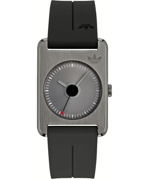 Die Adidas Originals® Analogue 'Retro Pop One' Unisex-Uhr AOST23563 ist die perfekte Verbindung von Stil und Funktionalität, geschaffen für all jene, die modernen Designideen zugetan sind. Diese Casual-Uhr besticht durch ein auffälliges graues Zifferblatt, das von einem rechteckigen, gunfarbenen Gehäuse aus Edelstahl umrahmt wird. Mit ihrem präzisen Quarzwerk können Sie sicher sein, dass Sie immer pünktlich sind. Die Uhr ist unisex gestaltet und damit das ideale Accessoire für alle, die eine harmonische Verbindung zwischen sportlicher Eleganz und modernem Design schätzen. Mit einem Durchmesser von 31 mm präsentiert sich das Gehäuse als ausgewogener Blickfang am Handgelenk und bleibt dabei mit einer Gehäusestärke von nur 9 mm schlank. Das stilvolle schwarze Silikonarmband sorgt nicht nur für einen bequemen Sitz, sondern ist auch robust genug für den täglichen Gebrauch. Mit einer Länge von 20 cm und einer Breite von 21 mm passt es sich mühelos allen Handgelenkgrößen an. Darüber hinaus bietet die Schnalle zusätzliche Sicherheit, sodass Sie die Uhr mit Vertrauen im Alltag tragen können. Die Uhr ist bis zu 3 Bar wasserabweisend und somit bestens für Spritzwasser und Regen geeignet, was sie zu einer idealen Wahl für lässige Ausflüge und aktive Lebensstile macht. Das Zifferblatt wird durch Mineralglas geschützt und somit ist die Adidas Originals 'Retro Pop One' nicht nur ein Zeitmesser, sondern ein echtes Statement-Stück, das moderne urbane Ästhetik verkörpert. Ob im Fitnessstudio oder bei einem Tag unterwegs, diese Uhr vereint mühelos Praktikabilität mit Stil.Shop Adidas Originals® Analogue 'Retro Pop One' Unisex-Uhr AOST23563 bei Ormoda