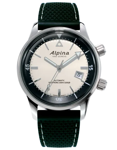 Alpina ist eine angesehene Marke mit einer reichen Geschichte in der Uhrmacherkunst, die für ihr Engagement bekannt ist, Zeitmesser herzustellen, die Robustheit und Präzision widerspiegeln. Gegründet im Jahr 1883, setzt die Marke weiterhin innovative Akzente und wahrt gleichzeitig das traditionelle Schweizer Handwerk. Alpina wird besonders geschätzt für ihre Hingabe, Uhren zu kreieren, die sich an begeisterte Abenteurer und Sportler richten. Jede Uhr ist mit Fokus auf Leistung durchdacht gestaltet und vereint modernste Technologie mit luxuriöser Ästhetik. Die Seastrong-Kollektion von Alpina, bekannt für ihre Taucheruhren, zeigt das Fachwissen der Marke bei der Herstellung zuverlässig-eleganter, wasserfester Zeitmesser. Die Serie Seastrong Diver Heritage verkörpert die Philosophie von Alpina, indem sie Sportlichkeit mit Eleganz verbindet, was sie zur bevorzugten Wahl für diejenigen macht, die sowohl funktionale Zuverlässigkeit als auch anspruchsvolles Design suchen.Entdecken Sie Alpina® Analoge 'Seastrong Diver Heritage' Herrenuhr