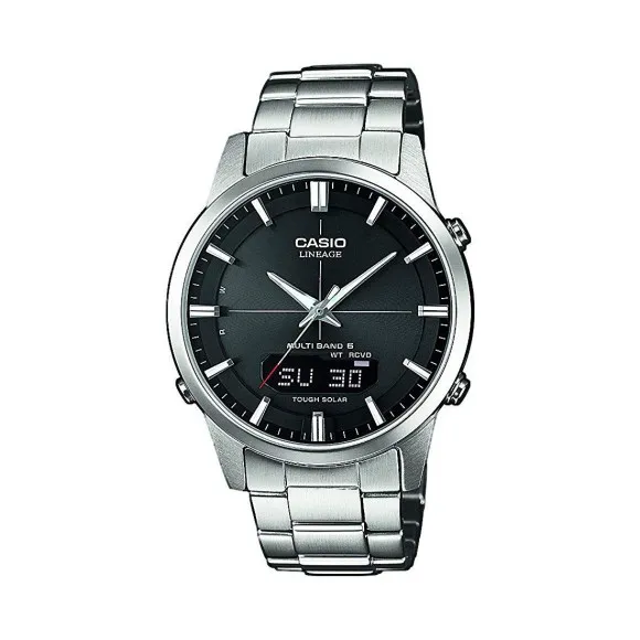 Präsentieren wir die Casio® Analogue-digital 'Collection' Herren Uhr LCW-M170D-1AER, eine bemerkenswerte Fusion aus Funktionalität und Stil. Dieses herausragende Zeitmessgerät verkörpert Casios Engagement für Innovation und Qualität. Mit ihrem solarbetriebenen Mechanismus trägt diese Uhr nicht nur zu einer nachhaltigen Zukunft bei, sondern gewährleistet auch eine zuverlässige Zeitmessung für den modernen Mann. Das schwarze Zifferblatt wird elegant von einem robusten, runden Edelstahlgehäuse umrahmt, das einen Durchmesser von 40 mm und eine Dicke von 9 mm aufweist und sowohl Langlebigkeit als auch Raffinesse bietet. Darüber hinaus sorgt das Saphirglasfenster für einen zusätzlichen Schutz und lässt Ihre Uhr so makellos wie am Tag des Kaufs erscheinen. Die Uhr vereint analoge und digitale Anzeigen und verbindet traditionelle Ästhetik mit modernster Technologie. Der praktische Tages- und Datumsanzeiger ist am Zifferblatt strategisch positioniert, zusammen mit zahlreichen Funktionen wie Weltzeit, Alarm und Stoppuhr, die perfekt für den Mann mit einem geschäftigen Lebensstil geeignet sind. Das silberne Edelstahlarmband, das bis zu 21 cm verlängert werden kann, harmoniert mit dem Gehäuse der Uhr und verstärkt Ihr Gesamtbild. Mit einer Wasserdichtigkeit von 5 ATM ist diese Uhr darauf ausgelegt, Wasserexposition standzuhalten, und somit vielseitig für den täglichen Gebrauch einsetzbar. Insgesamt ist die Casio® Analogue-digital 'Collection' Herren Uhr LCW-M170D-1AER Ihr zuverlässiger Begleiter, der mühelos jedem Outfit einen Hauch von Klasse verleiht, egal ob Sie sich in einer Firmenbesprechung befinden oder Ihre Freizeit genießen. Nutzen Sie die Kraft der Solarenergie und zeigen Sie gleichzeitig unvergleichlichen Stil mit dieser außergewöhnlichen Uhr. Shop Casio® Analogue-digital 'Collection' Herren Uhr LCW-M170D-1AER bei Ormoda