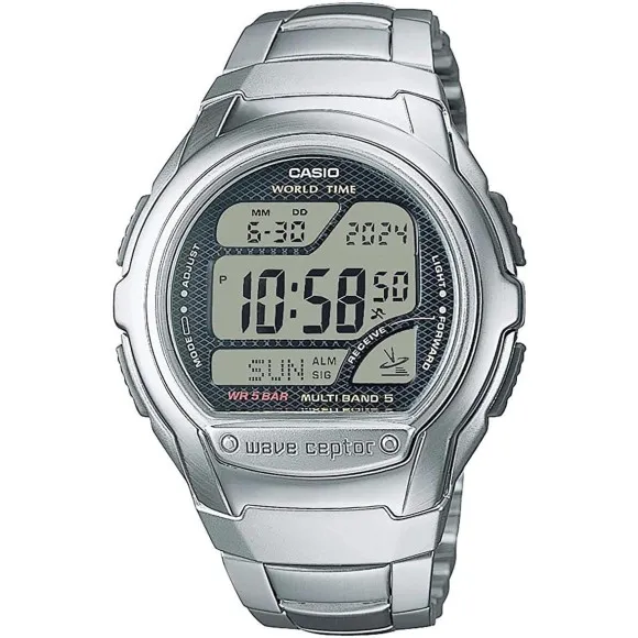Die Casio® Digital 'Collection' Herren Uhr WV-58RD-1AEF ist ein Beweis für das Engagement der Marke, zeitlose Funktionalität mit modernem Design zu verbinden. Diese Uhr ist für den anspruchsvollen Träger konzipiert und verfügt über ein robustes Gehäuse aus Resin, das hervorragende Haltbarkeit bietet und gleichzeitig einen bequemen Sitz gewährleistet. Mit einem Durchmesser von 43 mm und einer Dicke von 12 mm gelingt es dieser Uhr, die perfekte Balance zwischen Kühnheit und Tragbarkeit zu schaffen. Das LCD-Zifferblatt, das durch Mineralglas geschützt ist, sorgt für Klarheit und Widerstandsfähigkeit gegen Abnutzung und macht sie geeignet für den täglichen Gebrauch, sei es im Büro oder in der Freizeit. Diese Uhr brilliert in sportlichen Umgebungen und ist mit Funktionen wie Funksteuerung, Weltzeitanzeige und Stoppuhr ausgestattet. Die Countdown-Timer- und Alarmfunktionen erhöhen ihre Vielseitigkeit und machen sie zu einem praktischen Begleiter für aktive Lebensstile. Das elegante silberne Armband ist aus langlebigem Edelstahl gefertigt, misst 21 cm in der Länge und 21 mm in der Breite, sodass es sicher an jedem Handgelenk angepasst werden kann. Mit einer Wasserdichtigkeit von 5 Bar können Sie diese Uhr bedenkenlos in verschiedenen Umgebungen tragen, vom leichten Schwimmen bis zu Outdoor-Abenteuern. Die Faltschließe mit Druckknopf sorgt dafür, dass sie sicher sitzt, ohne den Tragekomfort zu beeinträchtigen. Die Tages- und Datumsanzeige sorgt für praktische Handhabung, damit Sie auf einen Blick informiert sind. Diese Uhr vereint Funktionalität mit akribischer Handwerkskunst und passt nahtlos in die Garderobe des modernen Mannes. Sie ist nicht nur eine Uhr, sondern ein unverzichtbares Accessoire für den Erfolg.