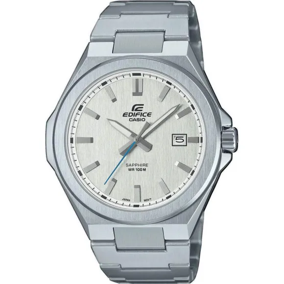 Schauen wir uns die Casio® Analogue 'Edifice' Herrenuhr EFB-108D-7AVUEF an, ein bemerkenswertes Kunstwerk, das präzise Technik mit einer eleganten Ästhetik kombiniert. Diese Uhr spiegelt Casios Engagement für Qualität und Innovation wider. Berühmt für ihre entwicklungsgerechten und stilvollen Uhren garantiert Casio, dass die Edifice-Serie die perfekte Mischung aus zeitlosem Design und moderner Funktionalität bietet. Mit einem Ruf, der sich über Jahrzehnte erstreckt, strahlt Casios Handwerk in der Uhrmacherkunst, wodurch ihre Uhren sowohl für den Alltag als auch für besondere Anlässe ideal sind. Die Edifice-Kollektion richtet sich an Männer, die Exzellenz schätzen und nicht nur Zeitmesser, sondern auch ein Stilstatement wollen. Jeder Aspekt der Edifice-Uhr verkörpert einen maskulinen Charme, der den anspruchsvollen Gentleman anspricht. Die Edifice-Uhr verfügt über ein silbernes Edelstahlgehäuse mit einem Durchmesser von 42 mm und einer Dicke von 8 mm, welches eine starke Präsenz am Handgelenk zeigt. Das runde Zifferblatt, ebenfalls silberfarben, präsentiert einen eleganten und minimalistischen Stil, der durch kratzfestes Saphirglas geschützt ist. Sichtbarkeit und Dauerhaftigkeit werden durch eine ATM-Bewertung von 10 bar gewährleistet, was sie für verschiedene Outdoor-Aktivitäten geeignet macht. Diese Uhr wird von einem präzisen Quarzwerk angetrieben, das eine genaue Zeitanzeige garantiert. Das polierte Edelstahlband, das 22 mm breit und 21 cm lang ist, wurde für Komfort und Stil entworfen und verfügt über eine Umklappverschluss mit einem Druckknopfmechanismus für einen sicheren Sitz. Mit einer funktionalen Datumsanzeige können Sie das Datum problemlos im Auge behalten. Die Edifice-Kollektion ist nicht nur ein Zeitmesser; sie ist eine Erklärung der Individualität, die für Männer geschaffen wurde, die Stil und Funktionalität schätzen. Erheben Sie Ihre Garderobe mit dieser beeindruckenden Casio® Analogue 'Edifice' Herrenuhr EFB-108D-7AVUEF und erleben Sie wahre Handwerkskunst an Ihrem Handgelenk. Shop Casio® Analogue 'Edifice' Herrenuhr EFB-108D-7AVUEF bei Ormoda