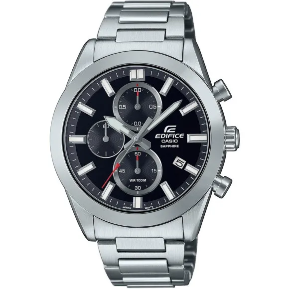 Präsentiert die Casio® Chronograph 'Edifice' Herren Uhr EFB-710D-1AVUEF, wo Präzision auf Stil in einem mutigen und dynamischen Paket trifft. Diese Uhr ist für den modernen Mann konzipiert, der Wert auf Leistung und Ästhetik legt. Aus der hoch angesehenen Marke Casio stammend, die weltweit für ihre innovative Technologie und haltbares Design bekannt ist, besticht die Edifice-Serie wirklich. Mit einem Bekenntnis zur Qualität schafft es Casio, traditionelle Handwerkskunst mit moderner Technologie zu verbinden, was zu Uhren führt, die sowohl funktional als auch modisch sind. Die Edifice-Kollektion spiegelt den Geist des Motorsports wider, mit ihren schlanken Konturen und komplizierten Merkmalen, die den Nervenkitzel der Geschwindigkeit widerspiegeln. Ideal für den immer beschäftigten Mann, wird diese Uhr Sie auf Kurs halten und gleichzeitig eine anspruchsvolle Aussage treffen. Die Uhr verfügt über ein auffälliges schwarzes Zifferblatt, das mit leuchtenden Zeigern akzentuiert ist und eine gute Lesbarkeit bei jeder Lichtverhältnisse garantiert. In robustem Edelstahl eingefasst, zeigt das runde Gehäuse die perfekte Kombination aus robustem Design und Eleganz, mit einer Dicke von nur 10mm, die sowohl Komfort als auch Stabilität verspricht. Das Saphirglas des Zifferblattes bietet außergewöhnliche Kratzfestigkeit und bewahrt das makellose Aussehen der Uhr. Mit einem Durchmesser von 41mm ist diese Uhr sowohl robust als auch raffiniert und eignet sich sowohl für lässige als auch formelle Anlässe. Zur sportlichen Note kommt hinzu, dass der Chronographen-Anzeige praktische Funktionalität bietet, die es dem Träger ermöglicht, Zeitintervalle zu messen, während der Datumsindikator Sie über den aktuellen Tag informiert. Mit einer Wasserfestigkeit von 10 Bar ist sie ein ausgezeichneter Begleiter für verschiedene Aktivitäten. Das silberne Edelstahlband verbessert nicht nur die Gesamterscheinung, sondern garantiert auch die Langlebigkeit, indem es 21cm lang und 21mm breit ist. Abgeschlossen mit einer Klappschließe mit einem Push-Button-Mechanismus ist diese Uhr sowohl sicher als auch leicht zu tragen und verkörpert die perfekte Kombination aus Luxus und Bequemlichkeit. Durch das geringe Gewicht von 135g sorgt sie für einen angenehmen Sitz für den ganzen Tag, sodass die Casio® Chronograph 'Edifice' Herren Uhr ein unverzichtbarer Teil Ihrer Sammlung wird.Shop Casio® Chronograph 'Edifice' Herren Uhr EFB-710D-1AVUEF bei Ormoda