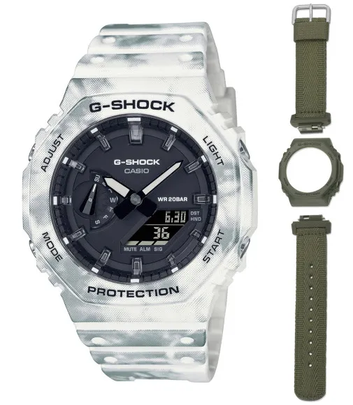 Entdecken Sie die außergewöhnliche Casio® Analoguhr-Digital 'G-shock' Herren Uhr GAE-2100GC-7AER, eine perfekte Kombination aus Funktionalität und Stil, entworfen für den modernen Mann. Mit einem robusten Quarzwerk steht diese Uhr fest in der Welt der militärisch inspirierten Zeitmesser. Das auffällige schwarze Zifferblatt wird durch langlebiges Mineralglas geschützt, wodurch sichergestellt wird, dass Ihr Zeitmesser gegen Kratzer und tägliche Abnutzung beständig bleibt. Das runde Kunststoffgehäuse mit einem Durchmesser von 41 mm und einer Dicke von 11 mm verleiht Ihrem Handgelenk eine klassische und zugleich moderne Ästhetik. Ihr leichtes Design mit nur 52 Gramm sorgt dafür, dass Sie den ganzen Tag über bequem tragen können, egal ob im Vorstandszimmer oder im Freien. Diese Uhr verfügt über ein mehrfarbiges Kunststoffarmband, das dem Gesamtbild einen dynamischen Akzent verleiht, mit einer Länge von 21 cm und einer Breite von 23 mm. Die Dornschließe sorgt für einen sicheren Sitz und einfache Anpassungen, damit die Uhr perfekt an Ihr Handgelenk angepasst werden kann. Sie werden die Tages- und Datumsfunktion zu schätzen wissen, die Sie organisiert hält, zusammen mit zusätzlichen Funktionen wie Stoppuhr, Countdown-Timer, Weltzeit, Alarm und Beleuchtung für eine einfache Ablesbarkeit bei schlechten Lichtverhältnissen. Robus gebaut, ist dieses Zeitmessgerät bis zu 20 bar wasserdicht, was es zu einem hervorragenden Begleiter für Land- und Wasserabenteuer macht. Ob für den persönlichen Gebrauch oder als Geschenk, die Casio® Analoguhr-Digital 'G-shock' Herren Uhr GAE-2100GC-7AER ist eine Investition in Präzision und Stil, die kein Mann missen sollte. Shop Casio® Analoguhr-Digital 'G-shock' Herren Uhr bei Ormoda