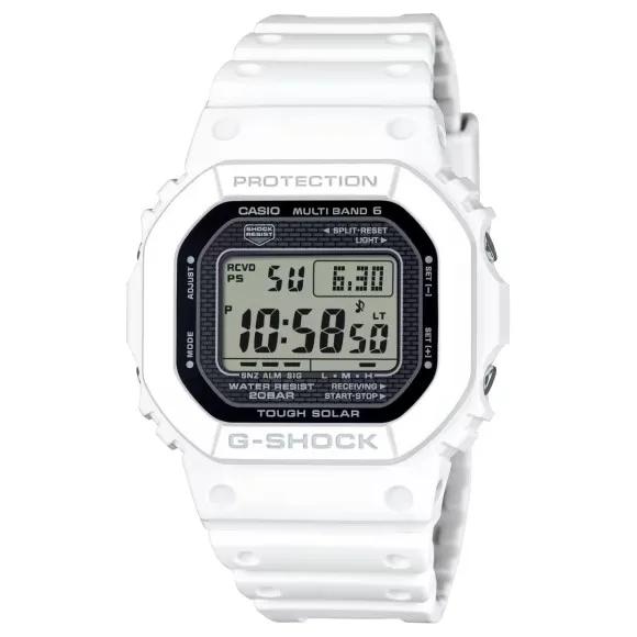 Die Casio® Digitale 'G-shock' Herrenuhr GW-5000HS-7ER ist der Inbegriff von robustem Stil und zuverlässiger Leistung. Entworfen für Männer, die einen aktiven Lebensstil führen, kombiniert dieses bemerkenswerte Zeitmesser robuste Funktionen mit eleganter Ästhetik. Das rechteckige Gehäuse aus Resin, mit einer Länge von 43mm und einer Breite von 35mm, zeigt ein klares schwarzes Zifferblatt, das wunderschön mit dem weißen Gehäuse kontrastiert. Dieses Zeitmesser ist nicht nur visuell beeindruckend, sondern auch mit einer beeindruckenden Funktionalität ausgestattet. Mit einer Dicke von nur 13mm passt es bequem am Handgelenk und behält dennoch eine markante Präsenz. Das Mineralglasfenster sorgt für Langlebigkeit, während das digitale Display der Uhr einen Tag-Datum-Kalender, eine Stoppuhr, Alarmfunktionen und Weltzeit bietet, perfekt für den globetrotternden Gentleman. Diese robuste Uhr ist solarbetrieben, was einen kontinuierlichen Betrieb ermöglicht, ohne häufige Batteriewechsel nötig zu haben. Mit einer Wasserdichtigkeit von 20 Bar hält sie jeder Abenteuerfahrt stand, sei es beim Eintauchen ins tiefblaue Wasser oder beim Navigieren durch stürmisches Wetter. Das weiße Kunststoffband mit einer Länge von 21cm und einer Breite von 24mm sorgt für einen sicheren Halt dank des zuverlässigen Schnallenverschlusses. Mit einem Gewicht von nur 72 Gramm fühlt sich die Uhr leicht am Handgelenk an, während sie gleichzeitig einen Hauch von Haltbarkeit ausstrahlt. Das Gesamtdesign vereint sowohl Stil als auch Funktionalität und macht sie zur perfekten Wahl für jede Gelegenheit, von lässigen Ausflügen bis hin zu formellen Veranstaltungen. Die Casio® 'G-shock' ist mehr als nur eine Uhr; sie ist ein Lebensstil. Shop Casio® Digitale 'G-shock' Herrenuhr GW-5000HS-7ER bei Ormoda
