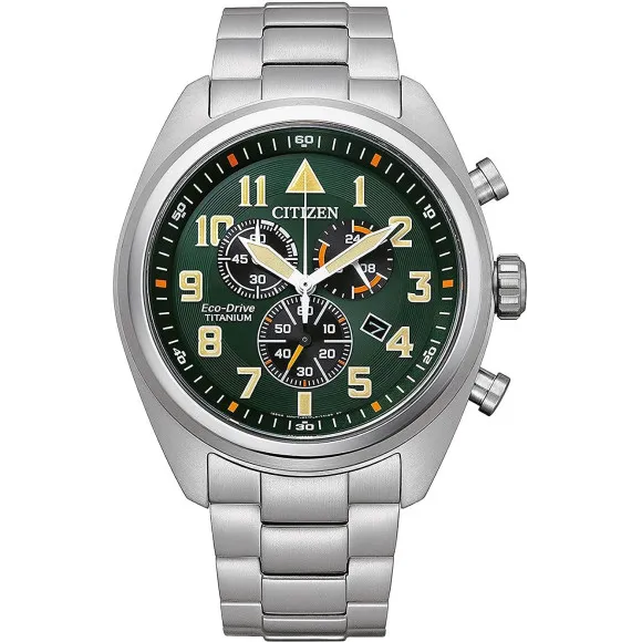 Lernen Sie die Citizen® Chronograph Herren Uhr AT2480-81X kennen, ein Meisterwerk in Präzision und Stil, das speziell für den modernen Mann entworfen wurde, der Qualität und Handwerkskunst schätzt. Diese Uhr verkörpert den Geist der Luftfahrt mit ihrem Pilotendesign und richtet sich an Personen, die ein dynamisches Leben führen. Das auffällige grüne Zifferblatt ist nicht nur visuell ansprechend, es bietet auch eine leicht ablesbare Anzeige, egal ob Sie im Cockpit sitzen oder Ihre täglichen Abenteuer navigieren. Die Eco-Drive-Technologie nutzt das Licht, sodass Sie sich nie um den Wechsel einer Batterie sorgen müssen. Gefertigt aus strapazierfähigem Titan strahlen sowohl das Gehäuse als auch das Armband Stärke und Eleganz aus. Das Gehäuse hat einen Durchmesser von 43 mm und eine Dicke von 11 mm, was eine robuste und zugleich schlanke Silhouette an Ihrem Handgelenk bietet. Mit einer lumineszierenden Funktion können Sie die Zeit auch bei schlechten Lichtverhältnissen problemlos ablesen. Das Chronographen-Display fügt eine weitere Funktionsebene hinzu für die, die präzises Timing schätzen, was diese Uhr ideal für sportliche Aktivitäten oder legere Ausflüge macht. Mit einer Wasserdichtigkeit von 10 Bar hält sie den Anforderungen des täglichen Lebens stand und ermöglicht es Ihnen, jeden Moment selbstbewusst zu genießen. Der Faltverschluss sichert die Uhr nicht nur an Ihrem Handgelenk, sondern geschieht auch mit unvergleichlicher Leichtigkeit. Die Citizen Chronograph Herren Uhr AT2480-81X ist nicht nur ein Zeitmesser, sie ist ein unverzichtbares Accessoire, das Ihre Ambitionen und Ihren Stil ergänzt.Shop Citizen® Chronograph Herren Uhr AT2480-81X bei Ormoda