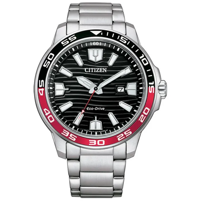 Die Citizen® Analogue Herrenuhr AW1527-86E ist ein wahres Zeugnis für das außergewöhnliche Handwerk und die Innovation, für die die Marke Citizen steht. Mit einem Ruf, der auf Exzellenz basiert, vereint Citizen Form und Funktion, um Zeitmesser zu liefern, die nicht nur ihren Zweck erfüllen, sondern auch Ihren Stil verbessern. Diese Uhr ist ein herausragendes Beispiel für ihr Engagement für Qualität, ausgestattet mit der Eco-Drive-Technologie der Marke, die Licht zur Energiegewinnung nutzt. Dies bedeutet, dass Sie sich nie um den Austausch von Batterien sorgen müssen. Speziell für den modernen Mann entworfen, verfügt diese Taucheruhr über ein robustes Edelstahlgehäuse mit einem Durchmesser von 45 mm und einer Dicke von 10 mm, was einen soliden, aber komfortablen Sitz am Handgelenk gewährleistet. Das auffällige schwarze Zifferblatt, geschützt durch Mineralglas, ist sowohl funktional als auch visuell ansprechend und verfügt über einen Datumszähler für Ihre Bequemlichkeit. Die mit Zahlen versehene Lünette trägt zur Praktikabilität bei und ermöglicht es Ihnen, die verstrichene Zeit mühelos zu verfolgen. Das passende Edelstahlband, das 21 cm lang und 20 mm breit ist, beinhaltet eine Faltschließe mit einem Druckknopfmechanismus für zusätzliche Sicherheit und Benutzerfreundlichkeit. Mit einer Wassertiefe von bis zu 10 Bar ist diese Uhr perfekt für Tauchbegeisterte und Abenteurer. Mit einer Höhe von 50 mm zwischen den Anstößern bietet dieses Zeitmessgerät ein ausgewogenes und elegantes Aussehen, das sowohl für legere als auch formelle Anlässe geeignet ist. Setzen Sie ein Statement mit der Citizen® Analogue Herrenuhr – hier treffen Eleganz und Funktionalität perfekt aufeinander und ergänzen Ihren Lebensstil. Shop Citizen® Analogue Herrenuhr bei Ormoda
