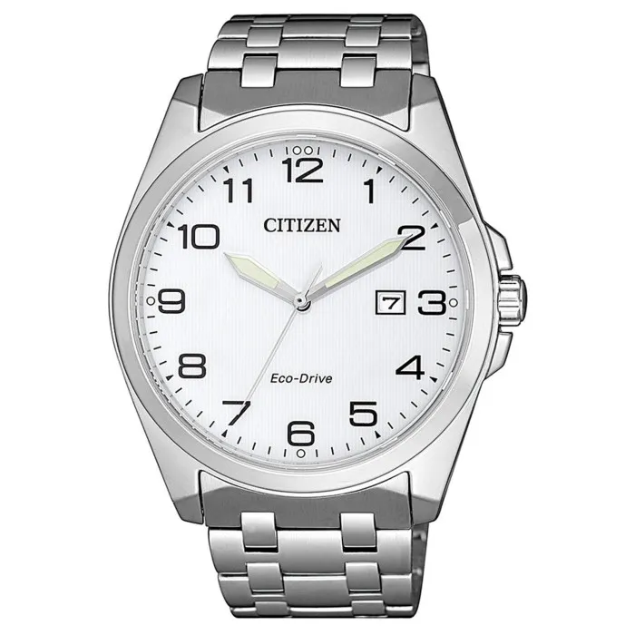 Die Citizen® Analoge Herrenarmbanduhr BM7108-81A verkörpert eine harmonische Verbindung von Raffinesse und Funktionalität, speziell für den modernen Mann entworfen. Diese Uhr verfügt über ein elegantes Gehäuse aus strapazierfähigem Edelstahl, das Langlebigkeit gewährleistet und gleichzeitig die schlanke Ästhetik bewahrt. Mit einem idealen Durchmesser von 41 mm sorgt sie für ein perfektes Gleichgewicht und eignet sich für verschiedene Anlässe, sei es bei einem zwanglosen Treffen oder einem Geschäftstermin. Das runde Gehäusedesign mit einer Dicke von nur 9 mm verleiht ihr eine subtile, aber dennoch präsente Ausstrahlung am Handgelenk. Das elegante weiße Zifferblatt ist mit klaren Indizes und Zeigern ausgestattet, die eine mühelose Ablesbarkeit auf einen Blick gewährleisten. Geschützt durch Saphirglas bleibt das Zifferblatt kratzfest und erhöht die Langlebigkeit der Uhr. Angetrieben von Citizens Eco-Drive-Technologie können Sie sich auf diese Uhr verlassen, um die genaue Zeit zu halten, ohne sich um den Austausch von Batterien kümmern zu müssen. Das praktische Datumsfenster integriert sich nahtlos in das Design und macht die Uhr nicht nur zum Zeitmesser, sondern auch zu einem Begleiter für die geschäftigen Momente im Leben. Das silberne Edelstahlarmband ist nicht nur optisch ansprechend, sondern ergänzt auch die gesamte Ästhetik der Uhr. Mit einer komfortablen Länge von 21 cm und einer Breite von 21 mm bietet es einen sicheren Sitz mit einem Klappverschluss, der über einen Druckknopf für einfache Handhabung verfügt. Mit einer Wasserdichtigkeit von bis zu 5 bar kann diese Uhr alltäglichen Spritzern standhalten und bleibt in einwandfreiem Zustand. Mit einem Gewicht von 140 Gramm sorgt sie für ein müheloses Tragegefühl, das es dem Träger ermöglicht, selbstbewusst weiterzumachen. Erleben Sie die Eleganz und Zuverlässigkeit der Citizen® Analoge Herrenarmbanduhr BM7108-81A, perfekt für diejenigen, die Wert auf Qualität und Stil in ihren Accessoires legen. Shop Citizen® Analoge Herrenarmbanduhr BM7108-81A bei Ormoda