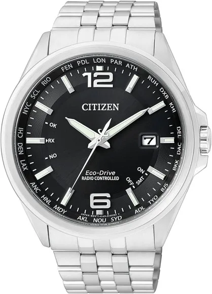 Präsentation der Citizen® Analogue Herrenuhr CB0010-88E, eine wahre Verkörperung von Eleganz und Funktionalität. Diese Pilotuhr verfügt über ein robustes 43mm Edelstahlgehäuse, das Raffinesse ausstrahlt und gleichzeitig Langlebigkeit gewährleistet. Die schlanke silberne Farbe des Gehäuses und des Armbands schafft einen auffälligen Kontrast zum tiefschwarzen Zifferblatt, das für optimale Lesbarkeit gestaltet ist. Ausgestattet mit einem Eco-Drive-Uhrwerk nutzt dieses Zeitmessgerät Licht und bietet eine umweltfreundliche Energiequelle, wodurch der Austausch von Batterien überflüssig wird. Die Uhr ist funkferngesteuert und gewährleistet präzise Zeitmessung, wo auch immer Sie sich auf der Welt befinden, unterstützt von den leuchtenden Zeigern, die in dunklen Umgebungen gut sichtbar sind. Für den modernen Mann entwickelt, reflektiert diese Uhr nicht nur einen luxuriösen Stil, sondern bietet auch praktische Merkmale. Das runde Gehäuse mit einer Dicke von nur 10mm vereint Komfort mit einem markanten Aussehen. Das Mineralglas sorgt für Kratzfestigkeit und schützt das Zifferblatt vor täglichen Abnutzungen. Mit einem Wasserschutz von 10 bar ist dieses Zeitmessgerät perfekt für jedes Abenteuer, sei es ein lässiger Ausflug oder ein Geschäftstreffen. Das 21 cm lange Edelstahlarmband ist anpassbar und bietet einen sicheren Sitz für jedes Handgelenk, gesichert durch eine Überklappeschließe mit Druckknopf für einfaches Anlegen. Zusätzlich bietet das Datumsfenster eine zusätzliche Ebene der Raffinesse und macht es zu einem unverzichtbaren Accessoire für jeden stilvollen Gentleman. In der Welt der Uhren gilt Citizen als Fackelträger für Qualität und Engagement und wird für seine innovativen Designs und fortschrittliche Technologie gefeiert. Die Citizen® Analogue Herrenuhr CB0010-88E ist mehr als nur eine Uhr; sie ist ein Statement-Stück, das Ihren Geschmack, Ihre Präzision und Ihre Wertschätzung für feine Handwerkskunst zur Schau stellt. Erweitern Sie Ihre Uhrenkollektion mit dieser atemberaubenden Uhr, die sicherlich Blicke auf sich ziehen und Gespräche anregen wird. Shop Citizen® Analogue Herrenuhr CB0010-88E bei Ormoda