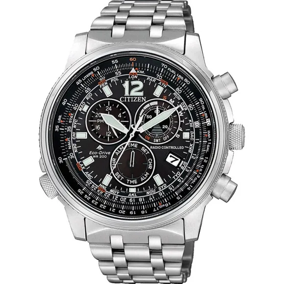 Entdecken Sie die Citizen® Chronograph Herren Uhr CB5860-86E, eine bemerkenswerte Fusion aus präziser Technik und stilvollem Design. Diese Uhr, die für den modernen Mann entworfen wurde, vermittelt den Geist der Luftfahrt mit ihrem Pilotenstil und überlegener Funktionalität. Die robusten Gehäuse aus Edelstahl in Silber messen 43 mm im Durchmesser und 13 mm in der Dicke, wodurch sie sowohl Stärke als auch Eleganz verkörpert. Das auffällige schwarze Zifferblatt, geschützt durch ein langlebiges Saphirglas, sorgt für hervorragende Sichtbarkeit und strahlt einen raffinierten Charme aus. Die leuchtenden Zeiger verleihen im Dunkeln einen kühlen Glanz, sodass Sie die Zeit selbst in den dunkelsten Umgebungen problemlos ablesen können. Die innovative Eco-Drive-Technologie von Citizen sorgt dafür, dass diese Uhr nie einen Batteriewechsel benötigt, da sie durch Sonnenlicht betrieben wird. Die Vielseitigkeit der Uhr zeigt sich durch die funkgenaue Zeitmessung und eine Vielzahl von Funktionen, einschließlich Stoppuhr und Alarm – perfekt für beschäftigte Profis und Abenteurer. Der faltbare Druckknopfverschluss sichert das Edelstahlband, das sich angenehm um Ihr Handgelenk legt und eine Länge von 21 cm sowie eine Breite von 18 mm aufweist. Mit einer Wasserbeständigkeit von bis zu 20 Bar ist die Citizen® Chronograph Herren Uhr bereit, Sie auf jeder Reise zu begleiten, sei es bei einem Geschäftstreffen oder einer entspannten Nacht. Diese Uhr ist mehr als nur ein Zeitmesser; sie ist ein Statement, das Ihren Stil unterstreicht und gleichzeitig höchste Zuverlässigkeit bietet. Mit so viel, was in dieser auffälligen Uhr steckt, werden Sie feststellen, dass sie nicht nur ein Accessoire, sondern ein unverzichtbarer Teil Ihres Alltags ist. Shop Citizen® Chronograph Herren Uhr bei Ormoda