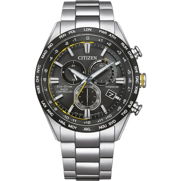 Präsentieren wir die Citizen® Chronograph Herren Uhr, Modell CB5947-80E, entworfen für den modernen Mann, der Präzision und Stil schätzt. Dieses exquisite Zeitmesser ist mit einem robusten Titangehäuse ausgestattet, das in einem eleganten Silberton gehalten ist. Mit einem Gehäusedurchmesser von 42mm und einer Dicke von 12mm vereint er Präsenz und Komfort am Handgelenk. Die Uhr ist im klassischen Pilotenstil gestaltet, ideal für diejenigen, die flugzeuginspiriertes Design und Funktionalität schätzen. Angetrieben wird die Uhr von Citizens Eco-Drive-Technologie, die Licht nutzt, um endlose Energie zu liefern und somit den Bedarf an Batteriewechsel überflüssig macht. Sie begeistert mit einem auffälligen schwarzen Zifferblatt, das durch Saphirglas geschützt ist, um haltbare Klarheit zu gewährleisten. Leuchtende Zeiger sorgen für zusätzliche Funktionalität und ermöglichen eine einfache Ablesbarkeit bei schwachem Licht. Das präzise Chronographen-Display erhöht die Vielseitigkeit der Uhr, sodass sie sowohl für legere als auch formelle Anlässe geeignet ist. Mit einer Weltzeitfunktion und einem sorgfältigen Design ist dieses Zeitmesser perfekt für internationale Reisende und hält Sie unabhängig von Ihrem Standort im Zeitplan. Der faltbare Verschluss mit Druckknopf sorgt für einen sicheren Halt, während das 21mm breite Titanuhrband bequem auf der Haut liegt. Mit einer Wasserdichtigkeit von bis zu 10 Bar ist die Citizen® Chronograph Herren Uhr dafür gemacht, täglichen Abenteuern standzuhalten. Mit einem Gewicht von nur 96 Gramm ist sie leicht und dennoch stabil, was sie zum idealen Begleiter für den anspruchsvollen Individuum macht, das in jedem Moment Luxus und Präzision verkörpern möchte. Shop Citizen® Chronograph Herren Uhr bei Ormoda