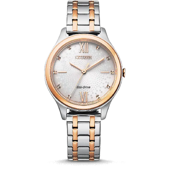 Citizen ist seit langem Vorreiter in der Uhrenherstellung und kombiniert innovative Technologie mit zeitlosem Design. Bekannt für ihre Eco-Drive Technologie nutzen Citizen-Uhren die Kraft des Lichts und gewährleisten so, dass Trägerinnen die Luxus eines selbstnachhaltigen Zeitmessers genießen können. Die Marke legt großen Wert auf Präzision und Handwerkskunst und liefert Uhren, die sowohl stilvoll als auch zuverlässig sind. Mit einer reichen Geschichte, die bis ins Jahr 1918 zurückreicht, bleibt Citizen bestrebt, die Grenzen dessen, was eine Uhr darstellen kann, zu erweitern - Schönheit, Nachhaltigkeit und Funktionalität. Von atemberaubenden Dressuhren bis hin zu robusten Sportmodellen verkörpert Citizen eine Welt voller Eleganz und Innovation.Entdecken Sie Citizen® Analogue Damen Uhr EM0506-77A