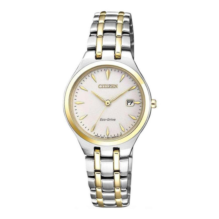 Die Citizen® Analogue Damen Uhr EW2484-82B ist eine bezaubernde Kombination aus Eleganz und Funktionalität, entworfen für die moderne Frau. Dieses lässige Zeitmesser ist mehr als nur ein Accessoire; es ist ein Ausdruck von Individualität und Stil. Die Uhr besitzt ein multicolour Edelstahl-Gehäuse mit einem bezaubernden runden Gehäuse von 28 mm, das nicht nur optisch ansprechend, sondern auch robust ist. Mit einer schlanken Dicke von 7 mm bietet sie ganztägigen Tragekomfort, perfekt für alltägliche Erledigungen und besondere Anlässe. Das elegante weiße Zifferblatt ist schön eingefasst und schafft einen wunderschönen Kontrast, der die Lesbarkeit erhöht. Die analoge Zeitdarstellung und der integrierte Datumsanzeiger helfen Ihnen, Ihr geschäftiges Leben mühelos im Blick zu behalten. Das strapazierfähige Mineralkristall schützt das Zifferblatt und sorgt dafür, dass Ihre Uhr über die Jahre hinweg wunderschön und funktional bleibt. Mit einer Wasserdichtigkeit von bis zu 3 bar können Sie dieses atemberaubende Stück getrost tragen, unabhängig vom Wetter. Das multicolour Edelstahl-Armband mit einer Länge von 19 cm und einer Breite von 13 mm ist sowohl für Komfort als auch für Stil konzipiert. Die Schnalle mit Druckknopf sorgt für einen sicheren Sitz und erhält dabei einen eleganten Look. Angetrieben von der Eco-Drive-Technologie nutzt diese Uhr Energie aus Licht, wodurch der Austausch von Batterien überflüssig wird, und sie trägt zu einer nachhaltigen Zukunft bei. Erleben Sie den Luxus im Alltag mit Citizen, einer Marke, die Qualität, Stil und Innovation verkörpert. Für die anspruchsvolle Frau, die außergewöhnliche Handwerkskunst und nachhaltiges Leben schätzt, ist diese Uhr eine unverzichtbare Ergänzung Ihrer Sammlung. Shop Citizen® Analogue Damen Uhr bei Ormoda