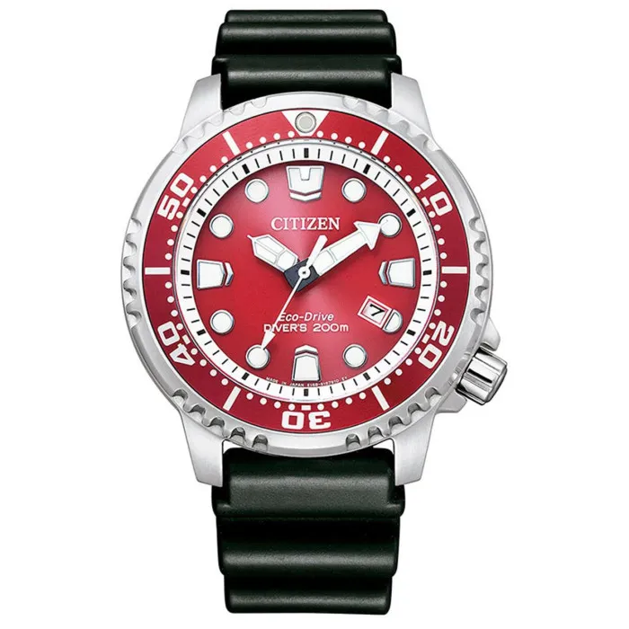 Die Citizen® Analogue 'Promaster Marine' Herren Uhr BN0159-15X ist der Inbegriff von Zuverlässigkeit und Stil, entworfen für diejenigen, die ihren eigenen Weg in der Unterwasserwelt gehen. Basierend auf der langjährigen Hingabe von Citizen zur Genauigkeit und Innovation, hebt sich dieses außergewöhnliche Zeitmessgerät durch dynamische Merkmale hervor, die sowohl für Abenteurer als auch für Wassersportbegeisterte geeignet sind. Mit einem Gehäusedurchmesser von 43 mm vermittelt das runde Edelstahlgehäuse nicht nur Stärke, sondern verspricht auch Haltbarkeit selbst in den härtesten marinen Umgebungen. Egal, ob Sie in die Tiefen abtauchen oder ein Beisammensein am Meer genießen, Sie können sich darauf verlassen, dass die Uhr die Zeit perfekt hält und gleichzeitig Ihren einzigartigen Stil unterstreicht. Das satte rote Zifferblatt strahlt ein Gefühl von Adrenalin aus, ergänzt durch ein Mineralglasfenster, das unter Druck für Klarheit sorgt. Genießen Sie die Funktionalität einer drehbaren Lünette, die es Ihnen ermöglicht, Ihre Tauchzeiten genau zu messen. Das Gummiband trägt nicht nur zum sportlichen Erscheinungsbild der Uhr bei, sondern bietet auch einen weichen und robusten Sitz mit einer Länge von 21 cm und einer Breite von 20 mm, abgeschlossen mit einer sicheren Schnalle. Für diejenigen, die Funktionalität schätzen, verleiht die Datumsanzeige diesem stilvollen Begleiter eine zusätzliche praktische Note. Mit einer Wasserdichtigkeit von bis zu 20 Bar gewährleistet dieses Zeitmessgerät, dass es den Anforderungen Ihres Lebensstils standhält, egal ob Sie ein aquatischer Abenteurer oder ein Freizeitträger sind. Das Eco-Drive-Movement ist eine Innovation, die Licht nutzt und sicherstellt, dass Sie sich nie um das Wechseln von Batterien kümmern müssen. Im Bereich der Taucheruhren hebt sich die Citizen® 'Promaster Marine' als ein Beacon von Leistung und Stil hervor, wodurch jeder Moment unter Wasser zu einem geschätzten Abenteuer wird. Shop Citizen® Analogue 'Promaster Marine' Herren Uhr bei Ormoda