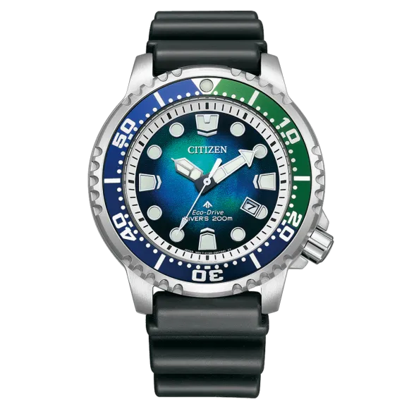 Citizen, ein renommierter Name in der Zeitmessung, verkörpert seit seiner Gründung Innovation und Präzision. Mit dem Fokus auf die Kombination modernster Technologie mit Luxus und Eleganz werden Citizen-Uhren mit akribischer Aufmerksamkeit für Details gefertigt, die sowohl Funktionalität als auch Ästhetik zeigen. Die Marke steht an der Spitze des Uhrenhandwerks mit ihrer Eco-Drive-Technologie und ebnet den Weg für nachhaltige Zeitmessung. Jedes Stück spiegelt das Engagement von Citizen wider, Uhren zu kreieren, die nicht nur zuverlässig, sondern auch ein Symbol modernen Handwerks sind. Von den Tiefen des Ozeans bis zu den strengen Anforderungen des Alltags bedienen Citizen-Uhren diejenigen, die nach Exzellenz streben. Mit jeder Kollektion erzählt Citizen eine einzigartige Geschichte von Abenteuer und Erkundung, treu dem Geist des Lebensstils von Tauchern. Entdecken Sie Citizen® Analogue 'Promaster Marine Limited Edition' Herren Uhr