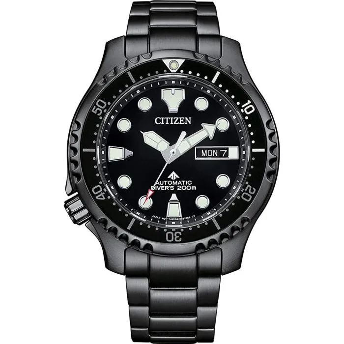 Die Citizen® Analogue 'Promaster Marine' Herren-Uhr NY0145-86EE ist der Inbegriff robuster Eleganz, die für den modernen Mann maßgeschneidert wurde. Speziell für Marine-Enthusiasten und Taucher entworfen, zeigt dieses Zeitmesser außergewöhnliche Funktionalität und Stil. Sie verfügt über ein solides Gehäuse aus schwarzem Edelstahl, das einen eleganten, aber dennoch robusten Charakter ausstrahlt und den Herausforderungen der Unterwassererkundung standhält. Mit einem Gehäusedurchmesser von 43 mm und einer Dicke von 12 mm liegt sie bequem am Handgelenk und ergänzt sowohl legere als auch formelle Kleidung. Sicherheit und Benutzerfreundlichkeit werden durch einen Klappverschluss mit Druckknopf verbessert, der einen festen Sitz selbst während der aktivsten Aktivitäten gewährleistet. Die Promaster Marine bietet ein auffälliges schwarzes Zifferblatt, das mit leuchtenden Markierungen verziert ist und die Lesbarkeit unter Wasserbedingungen erleichtert. Hinter dem Saphirglas eingekapselt, bleibt das Zifferblatt klar und kratzfest, was Langlebigkeit gewährleistet. Ausgestattet mit einer drehbaren Lünette und einem Kalender, der sowohl den Tag als auch das Datum anzeigt, enthält diese Uhr ein automatisches Uhrwerk, das Citizens Engagement für präzise Technik widerspiegelt. Das Zeitmesser erfüllt die Bedürfnisse von Tauchern mit einer bemerkenswerten Wasserdichtigkeit von 20 bar, was sie für Unterwasserabenteuer uneingeschränkt geeignet macht. Ob beim Navigieren durch die Wellen oder beim Genießen eines Abends in der Stadt, die Citizen Promaster Marine bietet die perfekte Mischung aus Funktionalität und Flair, die in jeder Umgebung Selbstbewusstsein ausstrahlt. Shop Citizen® Analogue 'Promaster Marine' Herren-Uhr bei Ormoda