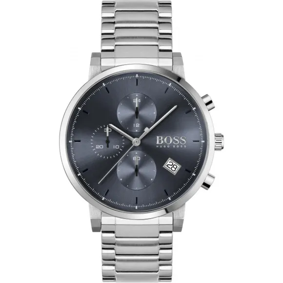 Präsentieren Sie die Hugo Boss® Chronographuhr 'Integrity' für Herren 1513779, ein herausragendes Zeitstück, das Funktionalität und eleganten Stil vereint. Diese Uhr ist ein Zeugnis des zeitgenössischen Geistes der Marke Hugo Boss, die für ihre eleganten Designs bekannt ist und den modernen Mann anspricht. Das Modell Integrity spiegelt eine Hingabe an Qualität und Handwerkskunst wider, geeignet sowohl für legere Ausflüge als auch für formelle Anlässe. Mit einem reichen Erbe in der Modeindustrie setzt Hugo Boss weiterhin Maßstäbe im Bereich Luxusaccessoires und bietet Männern ein essentielles Symbol für Raffinesse und Stil. Diese Uhr zeigt das Engagement der Marke für Exzellenz und stellt sicher, dass jedes Stück die Eleganz und das Selbstbewusstsein seines Trägers verkörpert.\n\nDie Hugo Boss Chronographuhr 'Integrity' ist für den anspruchsvollen Herren gestaltet, der sowohl Stil als auch Präzision schätzt. Das auffällige blaue Ziffernblatt ist eine perfekte Leinwand für das gut gearbeitete silberne Edelstahlgehäuse mit einem Durchmesser von 43 mm und einer Dicke von 10 mm. Diese Kombination verbessert nicht nur die ästhetische Anziehungskraft, sondern gewährleistet auch Langlebigkeit. Die Uhr verfügt über eine Chronographenanzeige, die sowohl funktional als auch stilvoll ist, sodass Sie die Zeit mühelos verfolgen können. Der Datumsanzeiger bringt zusätzlichen praktischen Nutzen in dieses Zeitstück und macht es ideal für den täglichen Gebrauch.\n\nMit Sorgfalt gefertigt, umfasst die Uhr ein robustes Mineralglasfenster, das Klarheit bietet und das Ziffernblatt schützt. Das Edelstahlband, mit einer Länge von 21 cm und einer Breite von 20 mm, sorgt für einen bequemen Sitz am Handgelenk und wird durch eine Klappschließe mit Druckknopf sicher fixiert. Die Uhr bietet zudem eine Wasserbeständigkeit von bis zu 3 bar, was sie zu einem zuverlässigen Begleiter für verschiedene Aktivitäten macht. Mit einem Gewicht von lediglich 139 Gramm ist sie sowohl leicht als auch substantiell und verkörpert die perfekte Mischung aus Luxus und Benutzerfreundlichkeit. Egal, ob Sie sich in einem Geschäftstreffen befinden oder einen lässigen Ausflug genießen, die Integrity-Uhr setzt ein Statement für Selbstbewusstsein und Raffinesse.Shop Hugo Boss® Chronograph 'Integrity' Herren Uhr 1513779 bei Ormoda