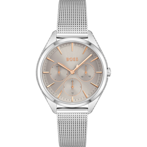 Hugo Boss verkörpert seit Jahrzehnten anspruchsvolles Design und Qualität. Die Marke ist ein Symbol für feine Handwerkskunst und zeitlose Eleganz, die sich sowohl in professionellen als auch in legeren Kontexten nahtlos einfügt. Jede Kollektion von Hugo Boss reflektiert das Engagement für außergewöhnliche Materialien, präzise Verarbeitung und ein klares Verständnis für feminine Faszination. Die Marke sticht hervor durch ihre Fähigkeit, traditionelles Geschick mit innovativen Techniken zu verbinden, um Schmuckstücke und Uhren zu kreieren, die sowohl Stilbewusstsein als auch Funktionalität demonstrieren. Hugo Boss versteht es, Alltagstauglichkeit mit einem Hauch von Luxus zu vereinen, womit sich die Marke über Generationen hinweg als unschätzbar wertvolle Komponente in der Garderobe von Frauen etabliert hat.Entdecken Sie Hugo Boss® Multi Dial 'Saya' Damenarmbanduhr 1502638