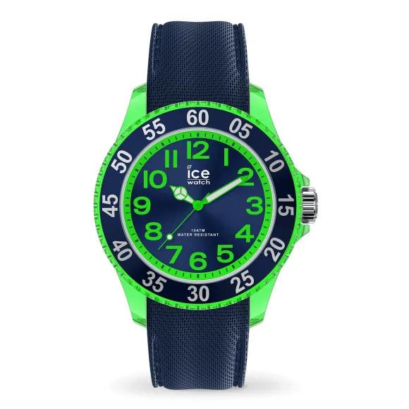 Die Ice Watch Analogue 'Cartoon' Kinderuhr ist ein verspieltes und lebhaftes Zeitmessgerät, das speziell für junge Uhrenliebhaber entwickelt wurde. Mit ihren charmanten Eigenschaften und kräftigen Farben ist diese Uhr ein ideales Accessoire für Kinder, die ihren Stil ausdrücken möchten. Das leuchtend grüne Uhrengehäuse umgibt das blaue Zifferblatt und erzeugt einen auffälligen Look, während der sportliche Stil für alle Aktivitäten geeignet ist, sei es auf dem Spielplatz oder bei Familienausflügen. Hergestellt aus einem robusten Harzgehäuse ist diese Uhr darauf ausgelegt, den täglichen Abenteuern der Kindheit standzuhalten. Das analoge Zifferblatt bietet ein klassisches Aussehen und ist leicht abzulesen, sodass Kinder auf unterhaltsame Weise die Uhrzeit lernen und genießen können. Ausgestattet mit einer drehbaren Lünette lädt diese Uhr zu spielerischer Interaktion ein, da Kinder mit dem Zifferblatt experimentieren können, was kreatives Spiel fördert. Das Silikonarmband ist nicht nur stilvoll, sondern auch bequem, mit einer Länge von 19 cm, perfekt für kleine Handgelenke. Mit einer Breite von 16 mm und einem leichten Design von nur 36 Gramm wird sie sie nicht belasten. Dieses Zeitmessgerät ist bis zu 10 bar wasserdicht, was es für verschiedene Wasseraktivitäten geeignet macht, so dass die Kinder es ohne Sorgen tragen können. Das Mineralglas schützt das Zifferblatt vor Kratzern und Schäden, was zur Langlebigkeit der Uhr beiträgt. Insgesamt ist die Ice Watch Cartoon nicht nur ein Zeitmessgerät; sie ist ein entzückendes Accessoire, das Spaß und Funktionalität vereint. 017735Shop Ice Watch® Analogue 'Cartoon' Kinderuhr (Klein) bei Ormoda