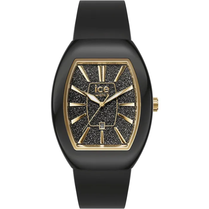 Umarmen Sie Ihren einzigartigen Stil mit dem raffinierten Charme der Ice Watch® Analogue 'Ice Boliday - Dome - Black Glitter Gold' Damenuhr. Diese für die moderne Frau entworfene Uhr verbindet nahtlos lässige Eleganz mit einem Hauch von Glamour. Mit einer Gehäusefarbe in elegantem Schwarz und einem funkensprühenden Glitzereffekt ist sie perfekt für Frauen, die in ihrem Alltagsstil einen Hauch von Glamour schätzen. Das Resin-Gehäuse hat eine Länge von 45 mm und eine Breite von 35 mm, ideal dimensioniert für einen bequemen, modischen Sitz an Ihrem Handgelenk. Die 12 mm Dicke sorgt dafür, dass sie ein zartes Profil beibehält, während sie mit einem zuverlässigen Quarzwerk ausgestattet ist, das Ihnen throughout des Tages genaue Zeitangaben liefert. Das auffällige schwarze Ziffernblatt verfügt über einen Datumsanzeiger, der hinter einem strapazierfähigen Mineralglasfenster geschützt ist, das Kratzer widersteht und Ihre Uhr stets makellos hält. Das Armband besteht aus robustem Gummi, das Flexibilität und Komfort bietet, während es Ihr Handgelenk sanft umschließt. Mit einer Länge von 19 cm und einer Breite von 19 mm lässt es sich an die meisten Handgelenke sicher anpassen und gleichzeitig eine schicke Ästhetik bewahren. Darüber hinaus ist diese Uhr bis zu 5 bar wasserdicht, was sie ideal für Ihren aktiven Lebensstil macht – egal ob Sie im Regen überrascht werden oder im Pool planschen, Ihre Uhr wird all das mit Anmut überstehen. Die Ice Boliday wird nicht nur Ihr Handgelenk schmücken; sie wird Ihr Ensemble aufwerten und Ihnen ein Gefühl von Selbstbewusstsein und Stil verleihen. Perfekt für jeden Anlass, sei es ein Brunch mit Freunden oder ein Abendessen, sie ist das vielseitige Accessoire, auf das Sie gewartet haben. Shop Ice Watch® Analogue 'Ice Boliday - Dome - Black Glitter Gold' Damenuhr (Klein) 024030 bei Ormoda