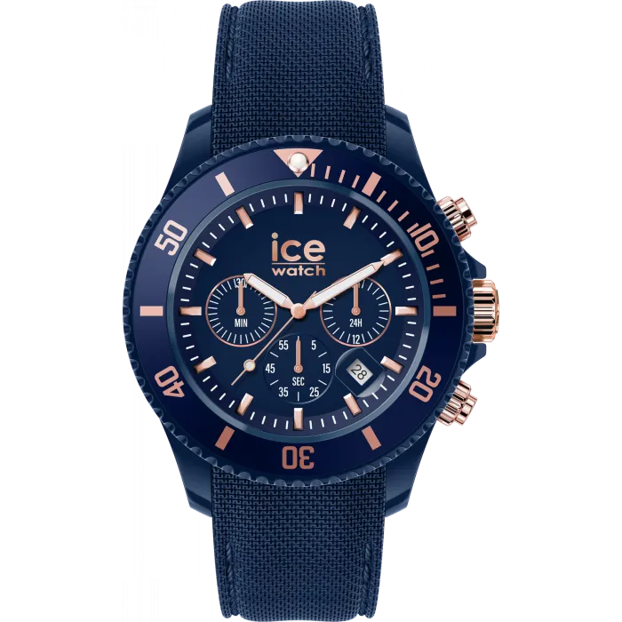 Ice Watch steht für eine einzigartige Kombination aus Stil und Funktionalität und bietet eine Kollektion von Zeitmessern, die auf den aktiven Mann abgestimmt sind. Mit Wurzeln in Belgien konzentriert sich die Marke auf lebendige Designs, die den modernen Lebensstilen gerecht werden. Jede Uhr wird mit Präzision und Liebe zum Detail gefertigt, wodurch sie nicht nur Accessoires, sondern unverzichtbare Werkzeuge für diejenigen sind, die sowohl Mode als auch Leistung schätzen. Die dynamische Ästhetik leitet oft von zeitgenössischen Trends ab und sorgt dafür, dass jedes Modell bei der jüngeren Zielgruppe Anklang findet, während es gleichzeitig erfahrene Uhrenliebhaber anspricht. Ice Watch innoviert ständig mit verschiedenen Materialien wie Harz und Silikon, um Haltbarkeit und Komfort zu verbessern. Das Bekenntnis der Marke zur Qualität entspricht ihrem Bestreben, Uhren zu produzieren, die sowohl trendy als auch zugänglich sind. Indem sie Armbänder zu einem Ausdruck der Individualität erhebt, hat Ice Watch eine unverwechselbare Nische in der Uhrenwelt geschaffen. Jede Veröffentlichung ist ein Testament für die Vision der Marke, Praktikabilität und auffällige Designs zu kombinieren, die den persönlichen Stil feiern. Entdecken Sie Ice Watch® Chronograph 'Ice Chrono - Dunkelblau Roségold' Herren Uhr