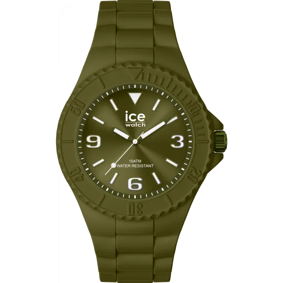 Präsentieren wir die Ice Watch® Analogue 'Ice Generation' Herren Uhr, Modell 019872. Diese Uhr ist so gestaltet, dass sie Raffinesse und Langlebigkeit verkörpert, und ist damit eine wesentliche Ergänzung für die Sammlung eines jeden Mannes. Das Gehäuse in strahlendem Grün aus leichtem Silikon ist robust und wurde gekonnt verarbeitet, um den Herausforderungen des täglichen Gebrauchs standzuhalten. Das runde Gehäuse hat einen Durchmesser von 40 mm und eine Dicke von 10 mm, was ein modernes Gefühl vermittelt und gleichzeitig eine klassische Ästhetik bewahrt. Die Mineralglasabdeckung sorgt für Kratzschutz und garantiert, dass Ihre Uhr in einwandfreiem Zustand bleibt. Die Uhr, die sowohl Funktionalität als auch Flair bietet, verfügt über ein lebhaftes grünes Zifferblatt, das die Kühnheit der Marke widerspiegelt. Die analoge Anzeige ist mit klaren Markierungen versehen, die eine mühelose Lesbarkeit gewährleisten. Kombiniert mit einem grünen Silikonarmband, das 21 cm lang und 19 mm breit ist, wurde diese Uhr für Komfort konzipiert und liegt mit einem zuverlässigen Dornverschluss fest am Handgelenk an. Sie unterstützt auch eine Wasserdichtigkeit von bis zu 10 bar, was sie für alltägliche Aktivitäten geeignet macht, egal ob Sie bei der Arbeit sind oder Ihre Freizeit genießen. Die Ice Generation Uhr zeigt nicht nur die Uhrzeit an; sie steht für einen Lebensstil, der auf Personen ausgerichtet ist, die Stil schätzen, ohne auf Praktikabilität zu verzichten. Mit einem Gewicht von nur 45 Gramm werden Sie kaum merken, dass Sie sie tragen, was den aktiven Lebensstil moderner Männer ergänzt. Heben Sie sich mit einem Stück hervor, das Spaß und Raffinesse perfekt verbindet. Ob kombiniert mit lässiger oder halbformeller Kleidung, die Ice Generation Uhr wird jedes Outfit aufwerten und die Aufmerksamkeit aus den richtigen Gründen auf sich ziehen. Shop Ice Watch® Analogue 'Ice Generation' Herren Uhr bei Ormoda