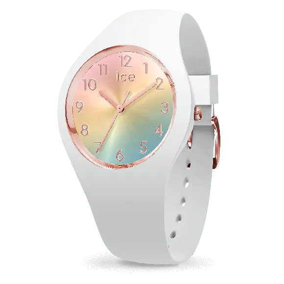 Ice Watch ist eine Marke, die sich in der Welt der Uhren hervorhebt, bekannt für ihre innovativen Designs und ihr Engagement für Qualität. Mit einer Leidenschaft für Kreativität fängt Ice Watch das Wesen saisonaler Trends ein und verwandelt sie in atemberaubende Accessoires. Jedes Stück verkörpert einen frischen und jugendlichen Geist und spricht diejenigen an, die es lieben, Mode mit Funktion zu kombinieren. Gegründet auf dem Prinzip, lebendige und stilvolle Uhren anzubieten, verwendet Ice Watch hochwertige Materialien und modernste Techniken, um Zeitmesser zu schaffen, die nicht nur praktisch, sondern auch ein Freude zu tragen sind. Die Marke fördert die Selbstexpression durch ihre farbenfrohen Designs und einzigartigen Kollektionen, was sie zu einer beliebten Wahl für modebewusste Personen macht. Ice Watch sorgt dafür, dass jeder Moment gefeiert wird, und mit jeder Uhr tragen Sie ein Stück dieser Philosophie am Handgelenk. Ihr Engagement für ständige Innovation und die Verschmelzung von Stil mit Zuverlässigkeit macht sie zu einem prominenten Namen in der Uhrenindustrie und lädt Kunden überall ein, die Freude an der Zeitmessung zu genießen. Entdecken Sie Ice Watch® Analogue 'Ice Sunset - Rainbow' Damen Uhr (klein) 015743