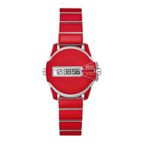 Die Diesel® Digital 'Baby Chief' Herrenarmbanduhr DZ2192 ist mehr als nur ein Zeitmesser; sie ist ein Ausdruck von Individualität und Stil. Für den modernen Mann konzipiert, der sowohl Funktionalität als auch Ästhetik schätzt, kombiniert diese Uhr ein lebhaftes rotes Farbschema mit hochwertiger Verarbeitung. Das runde Gehäuse aus Edelstahl, das einen Durchmesser von 32 mm und eine Dicke von 9 mm hat, beherbergt ein auffälliges rotes Zifferblatt mit digitaler Anzeige, perfekt für diejenigen, die innovatives Design zu schätzen wissen. Unter dem Mineralglasfenster verbessert die Kalenderfunktion Tag-Datum die Praktikabilität im täglichen Gebrauch. Die Uhr passt dank des robusten Edelstahlarmbands, das 21 cm lang und 18 mm breit ist, sicher um Ihr Handgelenk. Der Klappverschluss mit Druckknopf sorgt für Komfort und Sicherheit und macht sie ideal für den täglichen Gebrauch. Mit einer Wasserbeständigkeit von bis zu 5 bar hält diese Uhr den Anforderungen des Alltags stand, ohne dabei auf Stil zu verzichten. Das einzigartige, multicolor Styling des Gehäuses verleiht ihr einen edgy Touch, sodass Sie Ihre Persönlichkeit zum Ausdruck bringen können. Mit einem Gewicht von nur 102 Gramm ist sie leicht und angenehm für den ganztägigen Gebrauch. Diese Casual-Uhr kombiniert Sportlichkeit kunstvoll mit schicker Eleganz und macht sie vielseitig für verschiedene Anlässe, sei es bei der Arbeit oder beim Ausgehen. Die Diesel Baby Chief ist das perfekte Accessoire für den Mann, der es wagt, anders zu sein. Erleben Sie die perfekte Fusion von Form und Funktion mit Diesel, wo jedes Detail sorgfältig verarbeitet wird, um Ihre Erwartungen zu erfüllen und zu übertreffen.Shop Diesel® Digital 'Baby Chief' Herrenarmbanduhr DZ2192 bei Ormoda