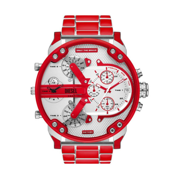 Die Diesel® Chronograph 'Mr. Daddy 2.0' Herren Uhr DZ7480 besticht durch ein robustes und markantes Design, das speziell für Männer entworfen wurde, die einen gewagten Stil zu schätzen wissen. Diese außergewöhnliche Uhr verkörpert den energetischen Geist der Diesel-Marke, die für ihren innovativen Ansatz in der modernen Mode bekannt ist. Die Aufregung dieses Zeitmessers liegt nicht nur in seinen einzigartigen Merkmalen, sondern auch in der Geschichte, die er über Selbstvertrauen und Individualität erzählt. Sie ist ideal für den modernen Mann, der einen sportlichen Lebensstil führt und gleichzeitig Luxus genießen möchte. Diesel überschreitet weiterhin die Grenzen traditioneller Armbanduhren und macht jedes Stück zu einem echten Statement. Was Diesel auszeichnet, ist das unerschütterliche Bekenntnis zu Qualität, Handwerkskunst und Originalität, Elemente, die in der 'Mr. Daddy 2.0' gründlich reflektiert werden. Jeder Aspekt dieser Uhr ist mit einem Gefühl von Abenteuer und Charakter durchdrungen, das mit dem kreativen und freien Geist von Diesel in Resonanz steht. Das auffällige Zifferblatt in Silber, umrahmt von einem runden Gehäuse aus Edelstahl, ergänzt durch ein auffälliges rotes Armband, verleiht dieser Uhr eine unverwechselbare Note, die sowohl auffällt als auch stilvoll wirkt. Mit einem Durchmesser von 57 mm und einer Dicke von 14 mm ist sie sowohl komfortabel als auch beeindruckend in der Präsenz. Der Chronograph und das Datum machen sie nicht nur zu einem effizienten Zeitmesser, sondern auch zu einem stilvollen Accessoire, das das Selbstbewusstsein und den individuellen Stil des Trägers unterstreicht.Shop Diesel® Chronograph 'Mr. Daddy 2.0' Herren Uhr bei Ormoda