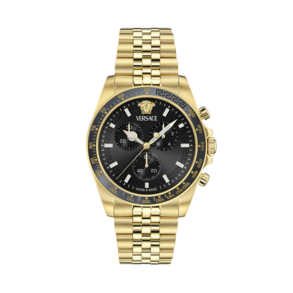 Versace ist ein Synonym für Luxus, Flair und italienisches Handwerk. Eine Marke, die den intricaten Tanz von Eleganz und avantgardistischer Mode versteht, hat Versace sich eine Nische in der Welt der Accessoires geschaffen. Jedes Stück, das in einer reichen Geschichte künstlerischen Designs verwurzelt ist, erzählt eine Geschichte – sei es eine Statement-Uhr oder ein Schmuckstück. Versace Uhren, wie die Greca Chr Wave, verkörpern dieses Ethos, indem sie innovative Technologie mit ästhetischer Exzellenz kombinieren. Die akribische Liebe zum Detail sorgt dafür, dass jedes Zeitmesser nicht nur ein Accessoire, sondern auch ein Ausdruck von Persönlichkeit und Raffinesse ist. Mit einem starken Erbe, das bis zur Gründung im Jahr 1978 zurückreicht, bleibt Versace an der Spitze des Luxusd Designs und drängt kontinuierlich die Grenzen. Hochwertige Materialien, einzigartige Designs und ein Engagement für Handwerkskunst machen Versace zu einem Favoriten unter Uhrenliebhabern und Modebegeisterten, die nicht nur eine Uhr tragen, sondern ein Kunstwerk besitzen wollen.Entdecken Sie Versace® Chronograph 'Greca Chr Wave' Herren Uhr