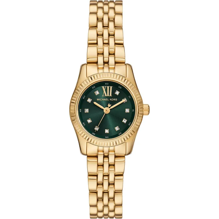 Lernen Sie die atemberaubende Michael Kors® Analogue 'Lexington' Damen Uhr MK4842 kennen, den idealen Begleiter für die moderne Frau, die Eleganz mit Funktionalität vereinen möchte. Dieses charmante Stück verfügt über ein schickes Gehäuse aus goldfarbenem Edelstahl mit einem raffinierten runden Design, perfekt ergänzt durch ein üppiges grünes Zifferblatt, das mühelos Aufmerksamkeit erregt. Mit einem Durchmesser von 26 mm und einer Dicke von nur 8 mm wurde sie entwickelt, um leicht am Handgelenk zu ruhen, was sie zu einem idealen Accessoire sowohl für legere Anlässe als auch für formelle Events macht. Das Mineralglas schützt das Zifferblatt der Uhr, sorgt für Langlebigkeit und bietet einen kristallklaren Blick auf die Zeit. Das goldfarbene Edelstahlband hat eine komfortable Länge von 19 cm und ist mit einem Klappverschluss mit Druckknopf ausgestattet, was das Tragen erleichtert und einen sicheren Sitz gewährleistet. Mit einem eleganten Analogdisplay verbindet diese Uhr Stil mit Zweck und bietet eine zuverlässige Quarzbewegung, die Sie pünktlich hält. Mit einer Wasserdichtigkeit von bis zu 5 bar ist diese zeitlose Uhr nicht nur ein Stil-Statement, sondern auch ein funktionales Stück, das die Herausforderungen des Alltags bewältigen kann. Ob Sie sich für einen besonderen Anlass kleiden oder nach einem täglichen Accessoire suchen, die Lexington Uhr verleiht jedem Outfit einen Hauch von Glamour. Setzen Sie auf Vielseitigkeit und Charme mit Michael Kors; es ist mehr als nur eine Uhr; es ist ein Statement.