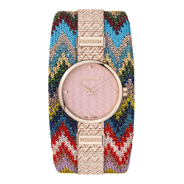 Missoni steht synonym für hochwertige Qualität, eine einzigartige Ästhetik und ein reiches Erbe in der Modewelt. Gegründet im Herzen Italiens hat diese ikonische Marke eine treue Anhängerschaft für ihre lebendigen Muster und luxuriösen Materialien gewonnen. Jedes Stück wird mit akribischer Aufmerksamkeit für Details gefertigt, was das Engagement der Marke für Exzellenz und Innovation widerspiegelt. Der Name Missoni ist nicht nur bekannt für seine modischen Designs, sondern auch für die Schaffung zeitloser Accessoires, die den persönlichen Stil bereichern. Das Unternehmen floriert durch die Mischung von Tradition und zeitgenössischem Flair und sorgt dafür, dass ihr Schmuck und ihre Uhren ebenso einzigartig sind wie die Frauen, die sie tragen. Missoni treibt unermüdlich die Grenzen des Designs voran und verbindet elegante Silhouetten mit kräftigen Farben, um Stücke zu schaffen, die in jeder Menge auffallen. Dieses Engagement für die Kunst ist in jeder Kollektion spürbar und macht Missoni zu einem Symbol für Luxus und Raffinesse. Nicht nur eine Marke, sondern eine Feier der italienischen Handwerkskunst im Bereich der hochwertigen Mode und Accessoires, die diejenigen anspricht, die Qualität und Einzigartigkeit in ihren Stilentscheidungen schätzen. Entdecken Sie Missoni® Analogue 'M1' Damenarmbanduhr