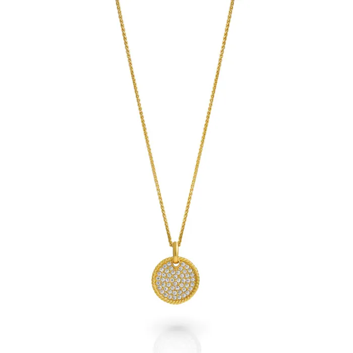 Die Orphelia® 'Bella' Damenkette aus 925er Sterlingsilber mit Anhänger - Gold ZH-7565/G ist eine atemberaubende Darstellung von Eleganz und Raffinesse. Diese exquisite Halskette verfügt über eine zarte Spiga-Kette, die 42 Zentimeter lang ist und mit zusätzlichen 3 Zentimetern verstellbarer Länge ausgestattet ist, sodass du die Passform individuell anpassen kannst. Hergestellt aus hochwertigem 925 Sterling Silber, verleiht der schimmernde Goldton dieser Halskette jedem Outfit eine warme, luxuriöse Note. Im Mittelpunkt steht der bezaubernde Anhänger, der 1,7 Zentimeter hoch und 1,4 Zentimeter breit ist. Er ist mit einer funkelnden Anordnung von 80 runden Zirkoniumsteinen verziert, die ein strahlendes weißes Funkeln ausstrahlen und das Licht wunderschön einfangen. Dieses sorgfältige Design bietet die perfekte Kombination aus modernem Charme und zeitloser Eleganz.