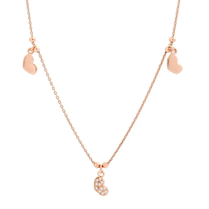 Die Orphelia® 'Elisa' Damen-Halskette aus Sterlingsilber - Rose ZK-7381 ist ein fesselndes Schmuckstück, das Eleganz und Modernität auf wunderbare Weise kombiniert. Hergestellt aus 925 Sterlingsilber, präsentiert sich diese Kette mit einem zarten Design, das den Hals anmutig ziert. Das Gewicht von 4.00 Gramm macht sie leicht und angenehm zu tragen, während die atemberaubende Rosé-Metallfarbe einen Hauch von Wärme verleiht. Mit einer Länge von 44 Zentimetern sitzt sie perfekt direkt unter dem Schlüsselbein und ist somit ein ideales Accessoire sowohl für lässige als auch für formelle Anlässe. Die Breite von 0.8 Zentimetern sorgt für eine subtile, aber auffällige Präsenz, die den femininen Charme der Trägerin unterstreicht. Besonders hervorgehoben werden die funkelnden Zirkonium-Steine in reinem Weiß, die perfekt mit dem sanften Rosé-Metall harmonieren. Jeder Stein ist sorgfältig platziert, um die Gesamtästhetik zu betonen und sicherzustellen, dass jede Winkel Eleganz und Raffinesse ausstrahlt. Der sichere Karabiner-Verschluss gewährleistet, dass die Kette den ganzen Tag über an ihrem Platz bleibt, sodass Sie sie mit Vertrauen tragen können. Diese Halskette ist nicht nur ein wunderschönes Accessoire, sondern auch ein Symbol für Liebe und Anmut und eignet sich somit perfekt als Geschenk für besondere Anlässe oder um sich selbst eine Freude zu machen. Schmücken Sie Ihren Hals mit der Orphelia 'Elisa' Kette und lassen Sie Ihre Eleganz in jedem Moment erstrahlen. Shop Orphelia® 'Elisa' Damen-Halskette aus Sterlingsilber - Rose bei Ormoda