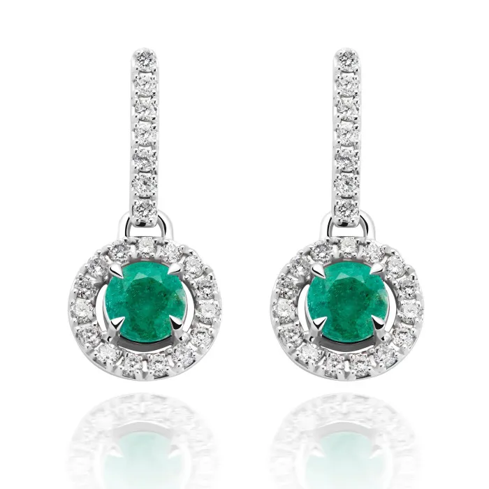Die Orphelia® 'Evina' Damen Ohrringe aus 18 Karat Weißgold - Silber OD-5332/EM verkörpern auf elegante Weise die Essenz raffinierter Sophistikation. Mit viel Liebe zum Detail gefertigt, sind diese Ohrringe für die anspruchsvolle Frau gedacht, die exquisite Schmuckstücke schätzt, die ihren Stil und ihre Anmut widerspiegeln. Die Tropfohrringe bieten eine zarte Balance aus Weißgold, das das Licht wunderschön einfängt, während die sanfte, schimmernde Oberfläche ihre Anziehungskraft verstärkt. Jeder Ohrring ist mit 44 atemberaubenden Diamanten besetzt, deren Klarheit kleine Einschlüsse aufweist, und wird von lebhaften Smaragdsteinen begleitet, die einen fesselnden Grünton ausstrahlen. Das Gesamtgewicht der Edelsteine beträgt bemerkenswerte 0,71 Karat und zeigt die kunstvolle Handwerkskunst, die in jedes Stück einfließt. Mit einer Höhe von 2 cm und einer Breite von 0,8 cm baumeln diese Ohrringe anmutig und lenken die Aufmerksamkeit auf Ihren Hals und heben Ihre natürliche Schönheit hervor. Sie sind ideal für formelle Anlässe sowie für den alltäglichen eleganten Look. Der Schmetterlingsverschluss sorgt für einen sicheren Halt bei jedem Tragen. Die Kombination aus Weißgold und Smaragden schafft ein zeitloses Stück, das über Trends hinausgeht – perfekt für die Frau, die an die Investition in Schmuckstücke glaubt, die ihre Geschichte erzählen. Tragen Sie die Evina-Ohrringe, um Ihre Persönlichkeit und Ihren Charme auszudrücken, und machen Sie diese zu einem geschätzten Teil Ihrer Schmucksammlung. Shop Orphelia® 'Evina' Damen Ohrringe aus 18 Karat Weißgold - Silber bei Ormoda