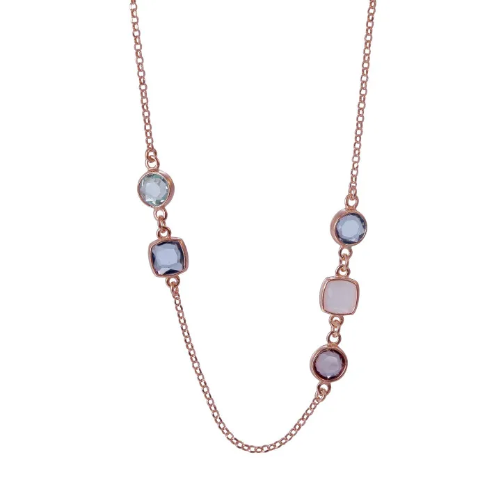 Präsentation der Orphelia® 'Fawn' Damenhalskette aus Sterlingsilber - Rose ZK-7410, ein fesselndes Schmuckstück, das Anmut und Eleganz verkörpert. Mit viel Liebe zum Detail aus hochwertigem 925 Sterlingsilber gefertigt, funkelt diese Halskette mit einer atemberaubenden Vielzahl von mehrfarbigen Glassteinen, die bei jeder Bewegung das Licht reflektieren. Das zarte Design vereint mühelos Raffinesse mit einem Hauch von verspieltem Charme und macht sie zu einem idealen Accessoire für diverse Anlässe, von lässigen Ausflügen bis hin zu feierlichen Ereignissen. Der Hummerverschluss garantiert ein sicheres und zugleich bequemes Tragen, sodass Sie sich mühelos schmücken können. Mit einer Gesamtlänge von 90 cm und einer Breite von nur 0,7 cm legt sich diese Halskette wunderschön um den Hals und betont Ihre Weiblichkeit, während sie jedem Outfit einen Hauch von Eleganz verleiht. Der rosafarbene Metall-Finish sorgt für Wärme und ergänzt die strahlenden Farben der Glassteine. Ob allein getragen oder in Kombination mit anderen Schmuckstücken, die 'Fawn'-Halskette ist vielseitig und stilvoll und perfekt für moderne Frauen, die exquisite Schmuckstücke schätzen. Bringen Sie ein wenig Magie in Ihr Alltagsoutfit oder veredeln Sie Ihre Abendgarderobe mit dieser bezaubernden Halskette, die Ihren einzigartigen Stil feiert. Shop Orphelia® 'Fawn' Damenhalskette aus Sterlingsilber - Rose bei Ormoda