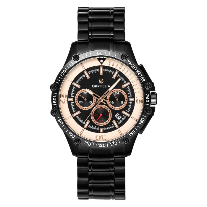 Orphelia steht für Raffinesse, Handwerkskunst und Langlebigkeit in der Uhrenherstellung. Mit der Vision gegründet, Zeitmesser zu schaffen, die Stil mit Funktionalität verbinden, hat die Marke sich einen Namen gemacht, der für Qualität steht. Jede Orphelia-Uhr ist sorgfältig gestaltet und gefertigt und zeigt eine harmonische Balance zwischen zeitgenössischem Design und traditioneller Uhrenkunst. Die Marke legt großen Wert auf die Verwendung hochwertiger Materialien, sodass jedes Stück nicht nur fantastisch aussieht, sondern auch perfekt funktioniert. Orphelia versteht die Essenz der Zeit und ehrt sie, indem sie Uhren kreiert, die jedem Moment im Leben des Trägers Wert und Eleganz verleihen. Mit ihrem Fokus auf einzigartige Designs, die verschiedene Geschmäcker und Lebensstile ansprechen, geht das Sortiment von Orphelia über das bloße Ablesen der Zeit hinaus und konzentriert sich auch auf die ausdrucksstarke Natur von Schmuck, die mit Selbstidentität und Individualität resoniert. Entdecken Sie Orphelia® Chronograph 'Frenetic' Herrenuhr