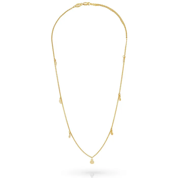 Präsentation der fesselnden Orphelia® 'Heritage' Damen-Halskette aus Sterlingsilber in Gold ZK-7559/G. Dieses atemberaubende Schmuckstück vereint Eleganz und zeitlosen Charme und ist ein absolutes Must-Have für die Schmuckkollektion jeder Frau. Hergestellt aus hochwertigem 925 Sterlingsilber erstrahlt die Halskette mit einer reichen Goldbeschichtung, die die Wärme und Schönheit von kostbarem Metall einfängt. Speziell für Frauen entworfen, die Sophistication und Anmut schätzen, steht dieses Stück als Symbol für persönliche Ausdrucksform und Erbe. Das Design umfasst einen charmanten runden Fantasietalisman, der eine verspielte Note hinzufügt und sich perfekt für verschiedene Anlässe eignet – von lässigen Ausflügen bis hin zu formellen Veranstaltungen. Mit akribischer Liebe zum Detail beinhaltet diese Halskette eine Rolo-Kette, die ihre Ästhetik erheblich verbessert und gleichzeitig Haltbarkeit und Komfort gewährleistet. Die Kette bietet eine verstellbare Länge von 37 bis 40 cm und ermöglicht die perfekte Passform für jedes Dekolleté, sodass Sie sie je nach Stimmung schichten oder solo tragen können. Der Federringverschluss sichert die Halskette mühelos und verbindet Mode mit Praktikabilität. Ihr zarter Talisman ist nicht nur mit 1,30 Gramm leicht, sondern strahlt auch eine Aura der Raffinesse aus. Heben Sie Ihren Stil mit der 'Heritage'-Halskette hervor und feiern Sie Ihre Individualität. Ob Sie sich selbst verwöhnen oder ein durchdachtes Geschenk für einen geliebten Menschen suchen, dieses Stück verkörpert Weiblichkeit und Eleganz, was es zu einer wahrhaft fesselnden Bereicherung für jede Garderobe macht.