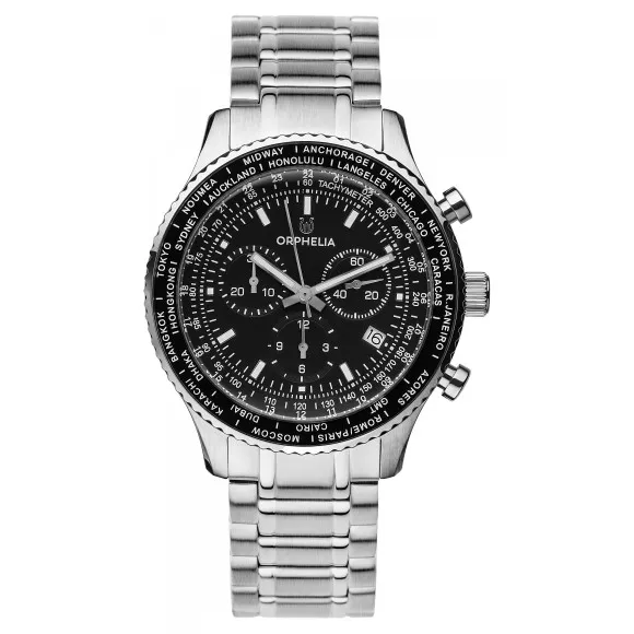 Die Orphelia® Chronograph 'Master' Herren Uhr OR82703 ist ein bemerkenswerter Ausdruck von Präzision und Eleganz, perfekt gestaltet für den modernen Mann, der die feinen Details im Leben schätzt. Mit einem auffälligen schwarzen Zifferblatt, das als Leinwand für leuchtende Zeiger und Ziffern dient, ist diese Uhr so funktional wie stilvoll. Das robuste Edelstahlgehäuse hat einen bemerkenswerten Durchmesser von 42 mm und eine Dicke von 14 mm, was einen soliden, aber bequemen Sitz am Handgelenk gewährleistet. Diese Uhr ist nicht nur ein Statement, sondern auch darauf ausgelegt, langlebig zu sein, mit einer Wasserdichtigkeitsbewertung von 10 Bar, was sie für verschiedene Aktivitäten und Umgebungen geeignet macht.\n\nIm Herzen des 'Master' liegt das zuverlässige Quarzwerk, das eine präzise Zeitmessung und Zuverlässigkeit gewährleistet. Die Chronographenfunktion verleiht einen sportlichen Touch und ermöglicht es Ihnen, die Stoppuhr und den Tachymeter zur Geschwindigkeitsmessung zu nutzen. Ihr elegantes, rundes Gehäuse spiegelt ein poliertes Silberfinish wider, das mit dem robusten Edelstahlarmband harmoniert, das 21 cm lang und 20 mm breit ist und damit eine ausgezeichnete Passform für jede Handgelenksgröße bietet. Der Sicherheits-Faltschließe sorgt dafür, dass die Uhr während jedes Abenteuers sicher am Handgelenk bleibt.\n\nNeben ihrer Praktikabilität spricht das Design der Uhr den abenteuerlichen Geist an und erinnert an klassische Pilotenuhren. Mit einer Kombination aus Stil und Funktionalität ist die Orphelia® Chronograph 'Master' das ideale Zubehör für Männer, die Eleganz und Leistung schätzen. Mit dieser Uhr am Handgelenk behalten Sie nicht nur die Zeit im Auge, sondern setzen auch ein starkes Statement, wo immer Sie hingehen.Shop Orphelia® Chronograph 'Master' Herren Uhr bei Ormoda