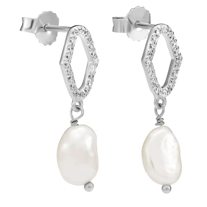 Die exquisiten Ohrringe Orphelia® 'Normandy' für Damen aus 925 Sterling Silber ZO-7574 verkörpern tatsächlich Eleganz und Anmut. Diese Ohrringe, die aus hochwertigem 925 Sterling Silber gefertigt sind, präsentieren eine harmonische Verbindung von sophisticated Design und zeitlosen Materialien. Der zarte Tropfenstil hängt elegant vom Ohr und lässt die strahlenden Zirconium-Steine das Licht wunderschön einfangen. Jeder Ohrring ist mit 40 runden Zirconiumssteinen besetzt, die ein strahlendes, weißes Funkeln ausstrahlen und jedem Outfit einen Hauch von Glanz verleihen. Das Design beinhaltet auch fesselnde, leicht off-white gefärbte Süßwasser-Zuchtperlen. Ihre einzigartige barocke Form sowie die Größe von 6,5 bis 7,0 mm schaffen einen fesselnden Kontrast zu Silber und Zirconium und verleihen dem Gesamtbild Tiefe und Raffinesse. Die Ohrringe sind leicht und wiegen nur 1,20 Gramm, was für Komfort beim Tragen sorgt, während sie gleichzeitig eine subtile, aber wirkungsvolle Aussage treffen. Mit einer Länge von 2,5 cm und einer Breite von 0,8 cm sind diese Ohrringe vielseitig genug, um sowohl legere als auch formelle Ensembles zu ergänzen, und damit ein unverzichtbares Stück in der Schmucksammlung jeder Frau. Der Schmetterlingsverschluss sorgt dafür, dass die Ohrringe sicher halten, sodass Sie sie bei jeder Gelegenheit selbstbewusst tragen können. Egal, ob Sie sich für ein besonderes Event herausputzen oder Ihrem Alltagsoutfit einen Hauch von Eleganz verleihen möchten, die Orphelia 'Normandy' Ohrringe sind für die moderne Frau gedacht, die sowohl Stil als auch Qualität schätzt. Tauchen Sie ein in eine Welt zeitloser Schönheit und lassen Sie Ihren persönlichen Stil mit diesen atemberaubenden Ohrringen erstrahlen. Shop Orphelia® 'Normandy' Damen Ohrhänger aus Sterling Silber - Silber bei Ormoda