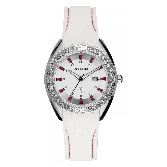 Entdecken Sie die bezaubernde Orphelia® Analogue 'Playful' Damen-Uhr 122-1711-71, ein wunderbares Accessoire, das für die moderne Frau entwickelt wurde, die Stil und Funktionalität schätzt. Dieses exquisite Zeitmesser verkörpert einen verspielten Geist und bewahrt gleichzeitig eine raffinerte Eleganz. Mit ihrem runden Gehäuse aus Edelstahl mit einem Durchmesser von 36 mm und einer schlanken Dicke von 9 mm balanciert sie perfekt zwischen Kühnheit und Subtilität. Die Uhr verfügt über ein lebhaftes mehrfarbiges Zifferblatt, das mit Steinsetzungen akzentuiert ist und Charme sowie verspielte Anmut ausstrahlt. Ihr leicht ablesbares analoges Display enthält einen Datumsanzeiger, der sowohl Praktikabilität als auch ästhetischen Genuss bietet. Das Armband ist aus weichem, reinem weißen Silikon gefertigt und sorgt mit einer Länge von 22 cm und einer Breite von 16 mm für einen angenehmen Tragekomfort. Der Schnallenverschluss garantiert einen sicheren Sitz, während die Langlebigkeit der Uhr durch das widerstandsfähige Mineralglas, das das Zifferblatt schützt, und eine beeindruckende Wasserdichtigkeitsbewertung von 3 bar verstärkt wird. Mit einem Gewicht von nur 54 Gramm ist dieses Zeitmesser leicht am Handgelenk und hebt sich doch als Statement-Stück hervor. Die zarten und gleichzeitig lebhaften Merkmale dieser Uhr verleihen jedem Outfit einen fröhlichen Akzent und machen sie perfekt für legere Ausflüge oder elegante Zusammenkünfte. Erhöhen Sie Ihre Accessoire-Kollektion und lassen Sie Ihre Persönlichkeit mit dieser fesselnden Uhr erstrahlen.Shop Orphelia® Analogue 'Playful' Damen-Uhr 122-1711-71 bei Ormoda