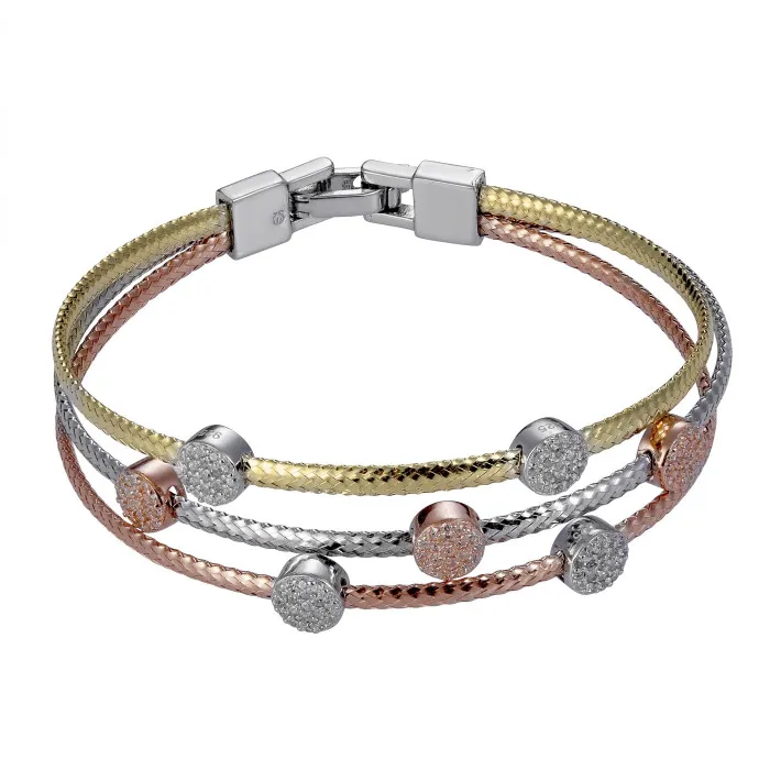 Das Orphelia® Damenarmband aus 925er Sterlingsilber - Gold/Silber/Rosé ZA-7413 ist ein atemberaubendes Stück, das Eleganz mit zeitgemäßem Design kombiniert. Gefertigt aus hochwertigem Sterlingsilber, zeigt dieses Armband das klassische Dreifarbenschema aus Gold, Silber und Rosé, was es zu einem vielseitigen Accessoire für jeden Anlass macht. Der praktische Klappverschluss sorgt für einen sicheren Sitz und verleiht diesem zeitlosen Stück einen Hauch von modernem Chic. Mit einer Breite von 1,5 cm und einer Länge von 16 cm passt dieses Armband perfekt am Handgelenk und betont Ihre natürliche Schönheit, ohne Ihren Stil zu überwältigen. Die Verzierung aus langlebigem Zirkonium in strahlendem Weiß verleiht einen funkelnden Akzent, der Aufmerksamkeit auf sich zieht und zugleich subtil genug für den Alltag ist. Genießen Sie den Luxus einer bewährten Marke, die das Wesen von Weiblichkeit und Stil versteht. Orphelia ist seit langem ein Synonym für Eleganz und Raffinesse und bietet Frauen Schmuck, der Zeit und Trends überdauert. Ob Sie sich für ein besonderes Ereignis herausputzen oder ein lässiges Outfit aufwerten möchten, dieses Armband fügt genau die richtige Note hinzu. Jedes Stück ist sorgfältig für die moderne Frau entworfen und spiegelt eine Wertschätzung für Qualität, Handwerkskunst und Individualität wider. Setzen Sie mit dem Orphelia® Damenarmband ein Statement und lassen Sie es Ihr persönliches Stil-Statement sein. Shop Orphelia® Damenarmband aus Sterlingsilber - Gold/Silber/Rosé bei Ormoda